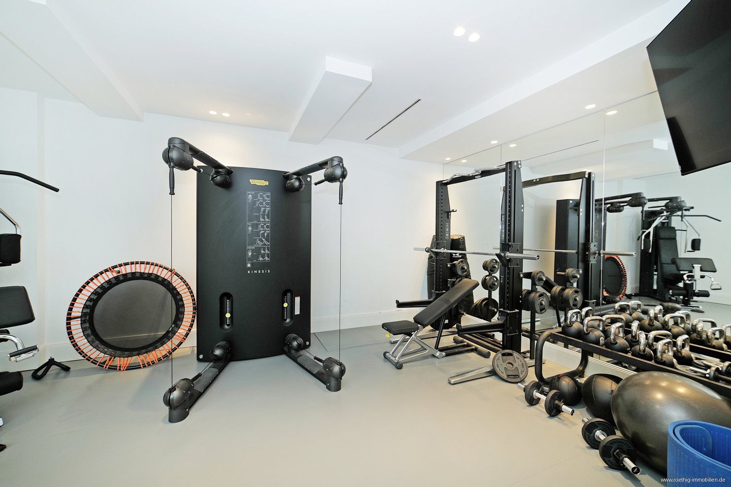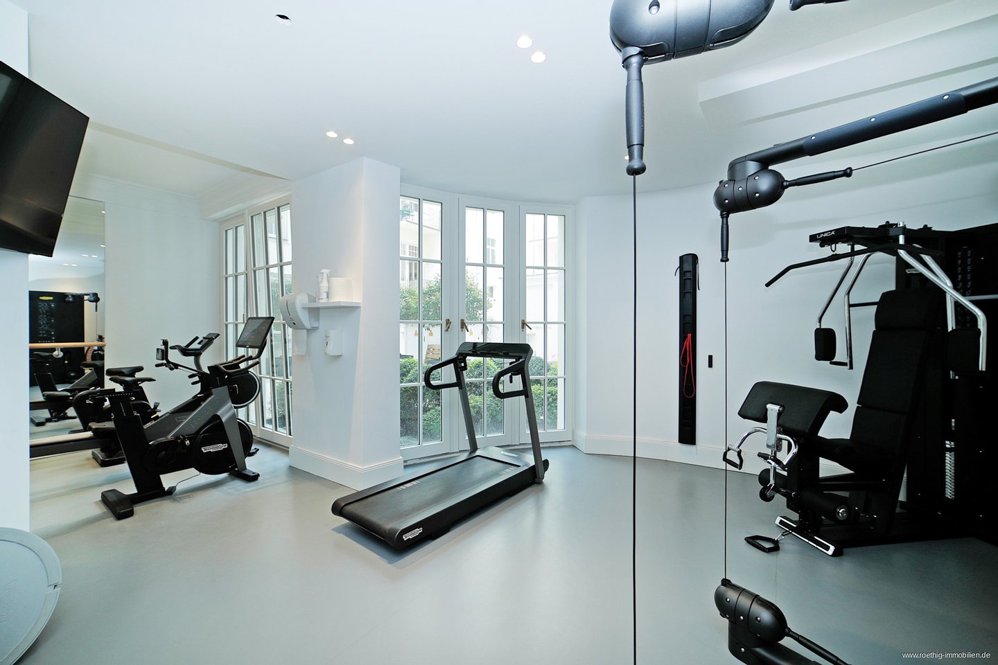 Abgerundet wird dieses Angebot durch ein separates Kellerabteil sowie durch den in der Wohnung ansässigen Hauswirtschaftsraum mit Waschmaschine & Trockner. Zusätzlich kann bei Bedarf ein Tiefgaragenstellplatz angemietet. Ein weiteres Highlight ist der im Erdgeschoss ansässige, für die Bewohner nutzbare Fitnessraum mit modernen Cardio- und Krafttrainingsgeräten.
