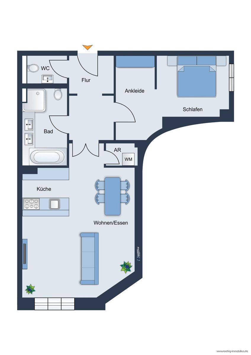 Nach dem Betreten der Wohnung gelangen Sie zunächst in den zentralen Eingangsbereich, welcher Platz für Ihre Garderobe beherbergt - perfekt um Ihre Gäste zu empfangen. Zusätzlich finden Sie ein modernes Gäste-WC vor. Die Fußbodenheizung, welche in der gesamten Wohnung verbaut ist, versprüht wohlige Wärme.