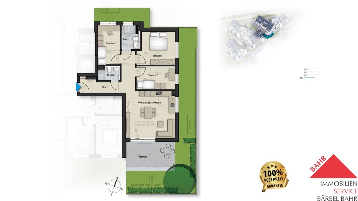 • Eigener Garten (ca. 57 m²) & Terrasse