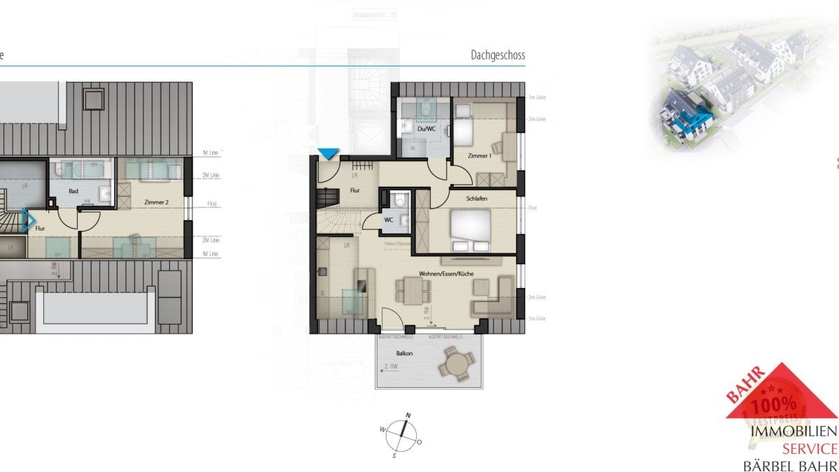Diese einzigartige 4-Zimmer-Maisonette-Wohnung ist mit ca. 101 m² die größte Einheit im Haus 1 und erstreckt sich über das Dachgeschoss und die Galerie.