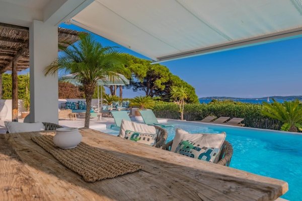 In ruhiger Umgebung, nur 500 Meter vom Strand entfernt, genießt diese moderne Villa eine Südausrichtung mit atemberaubendem Blick auf Saint-Tropez.