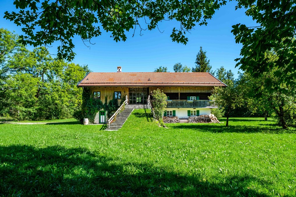 Der denkmalgeschützte Bauernhof liegt auf einem topografisch ebenen und sonnigen Grundstück im Ortsteil Steinbachau der Gemeinde Gaißach, kurz vor Lenggries.