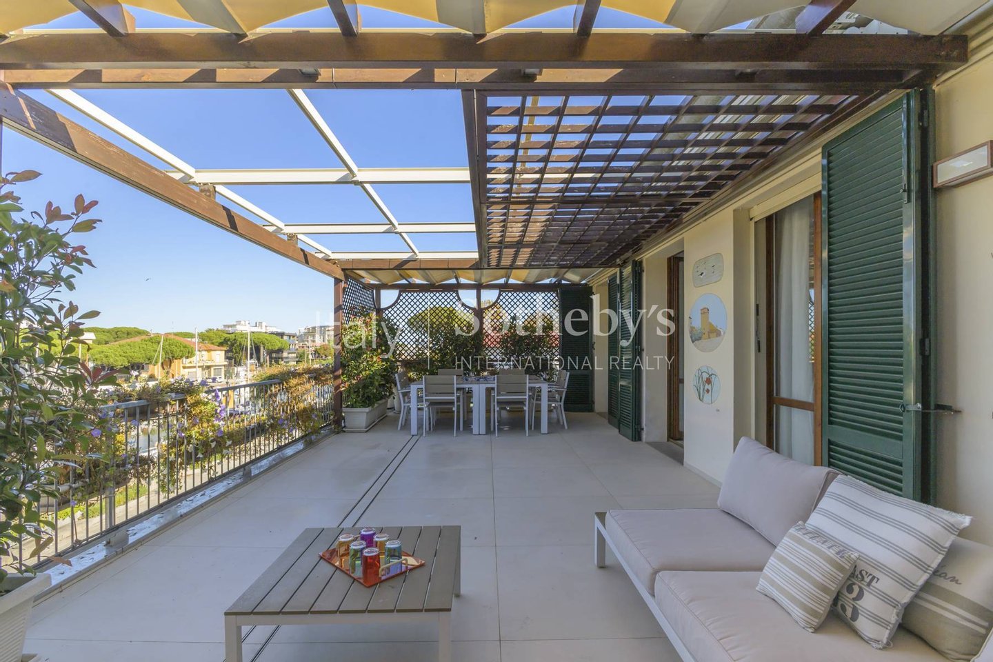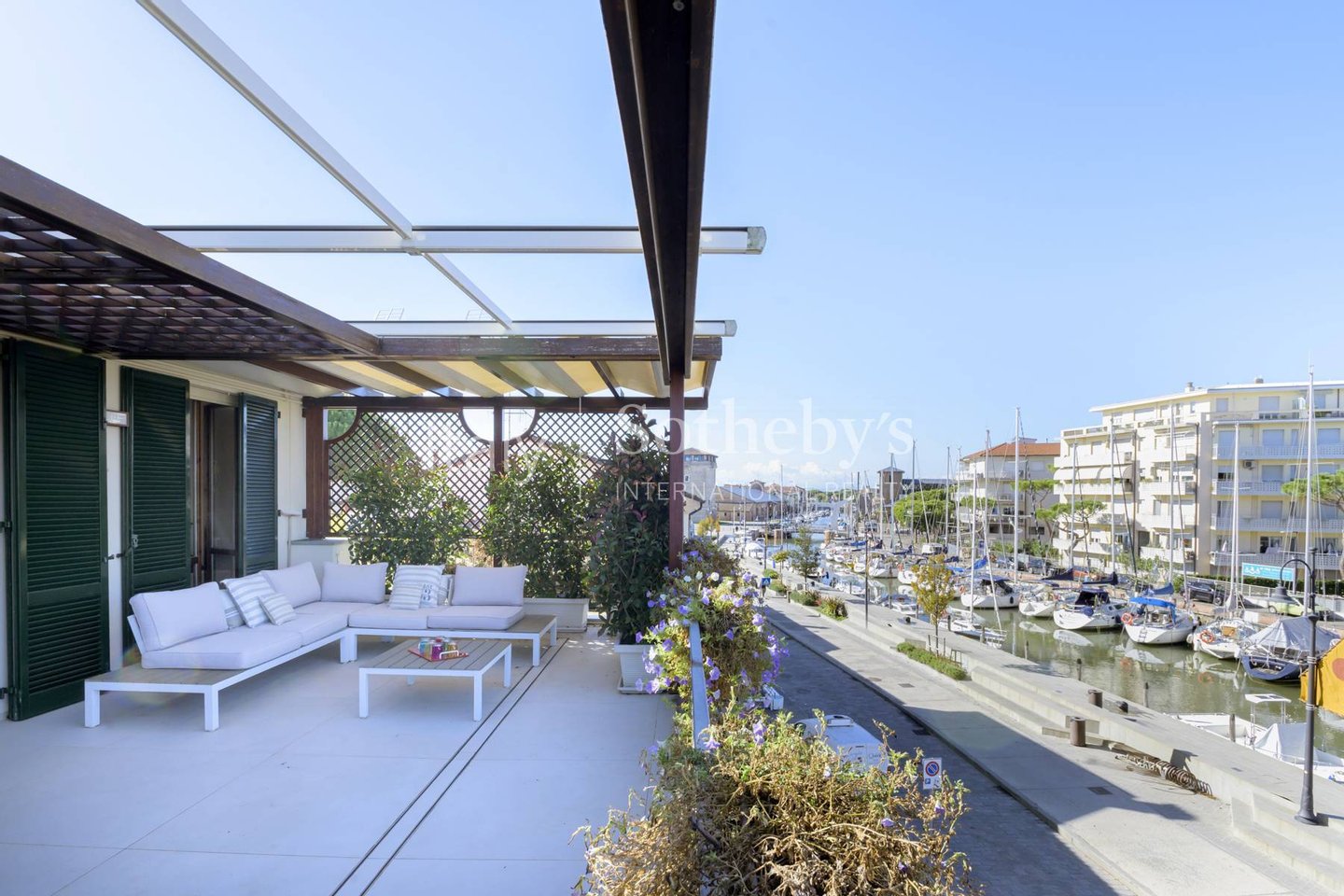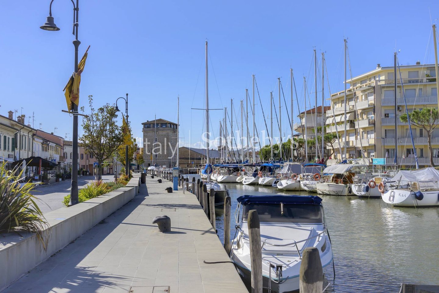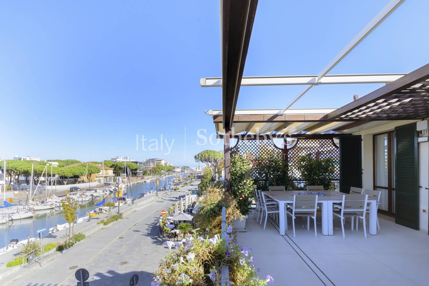 Mit Blick auf den malerischen Hafenkanal von Cervia verfügt dieses Penthouse über eine großzügige Terrasse von 50 m² - ideal, um den Blick auf den Hafen zu genießen und angenehme Momente im Freien zu verbringen.