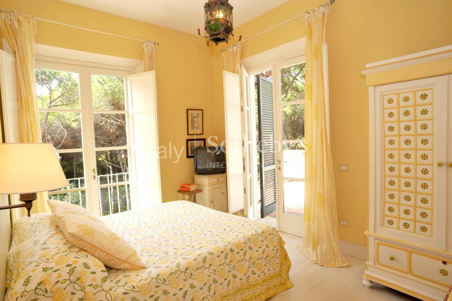 Outside, the estate features a lush private garden, perfect for leisurely walks or enjoying the Mediterranean sun, and a swimming pool surrounded by comfortable loungers. Guests also have private access to the beach, allowing for moments of complete privacy and tranquility. Villa Grande offers a unique combination of history, luxury, and natural beauty, making it an extraordinary retreat along the Italian coast.
