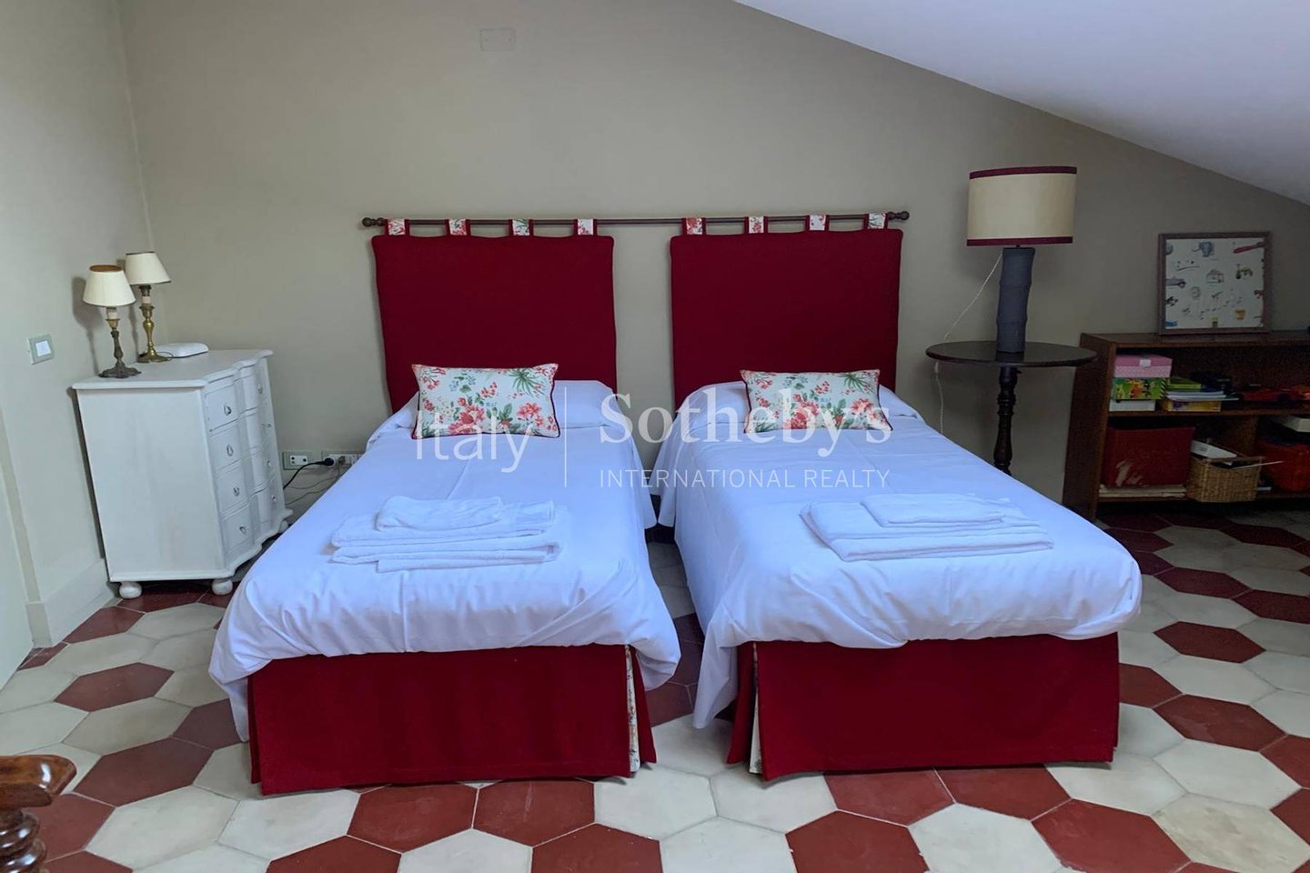 The stunning estate combines elegance and comfort, offering six spacious double bedrooms, each with an en-suite bathroom, and one single bedroom. The interiors blend classic Tuscan architecture with refined furnishings, creating a warm and harmonious atmosphere.