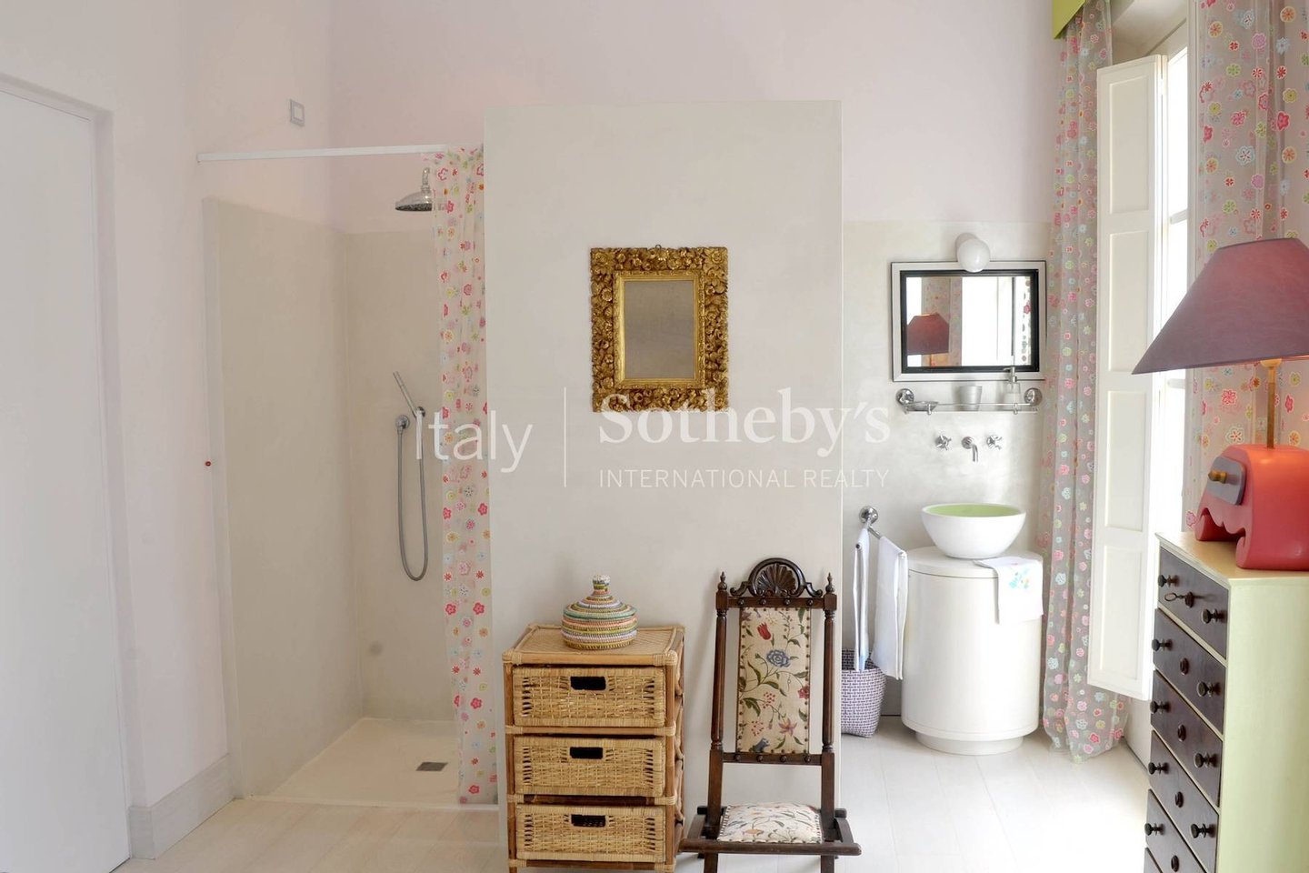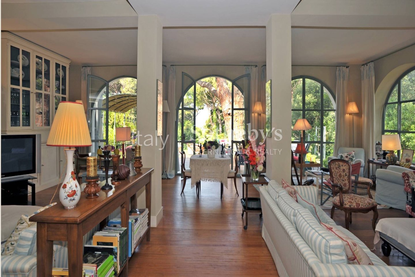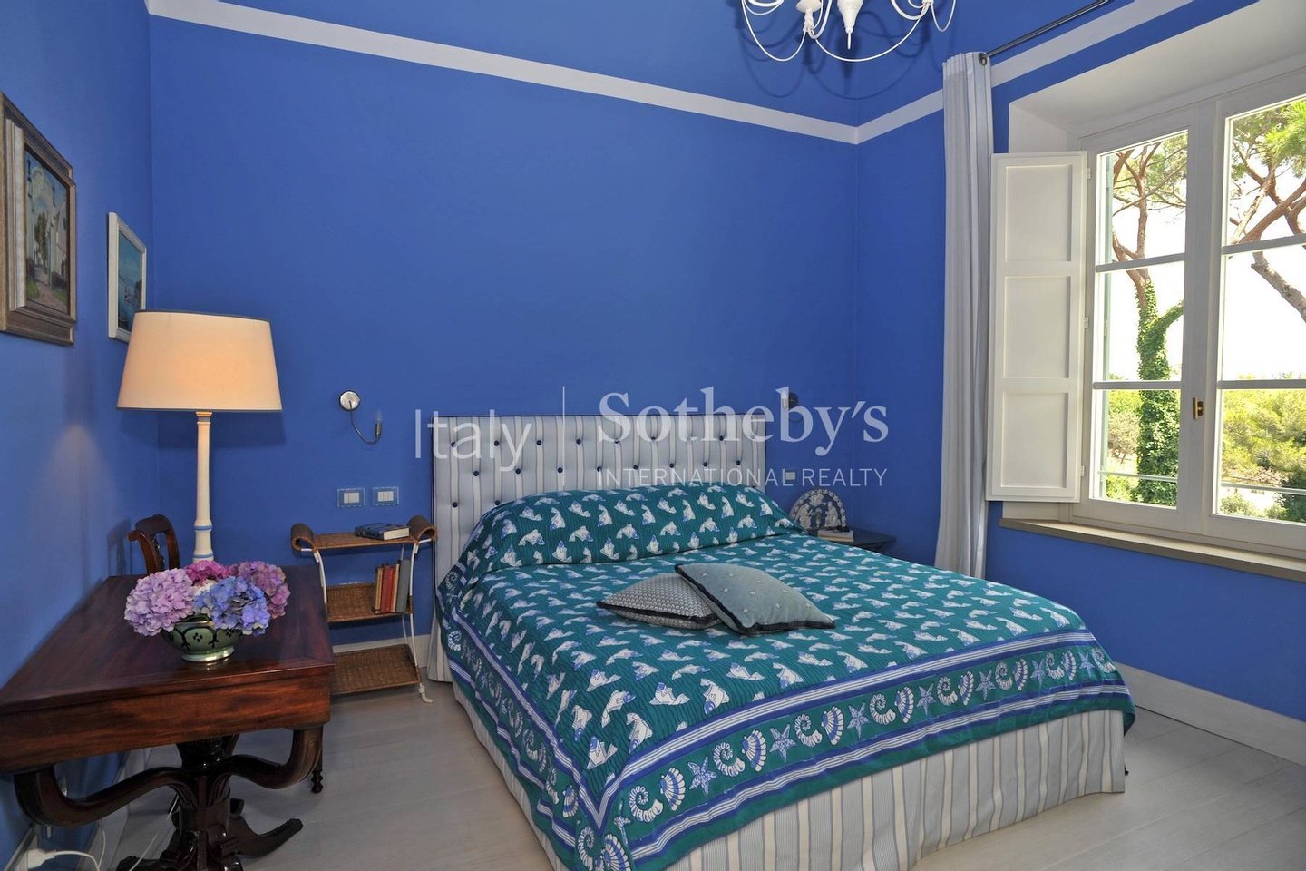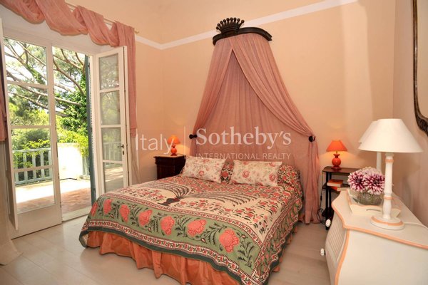 Outside, the estate features a lush private garden, perfect for leisurely walks or enjoying the Mediterranean sun, and a swimming pool surrounded by comfortable loungers. Guests also have private access to the beach, allowing for moments of complete privacy and tranquility. Villa Grande offers a unique combination of history, luxury, and natural beauty, making it an extraordinary retreat along the Italian coast.