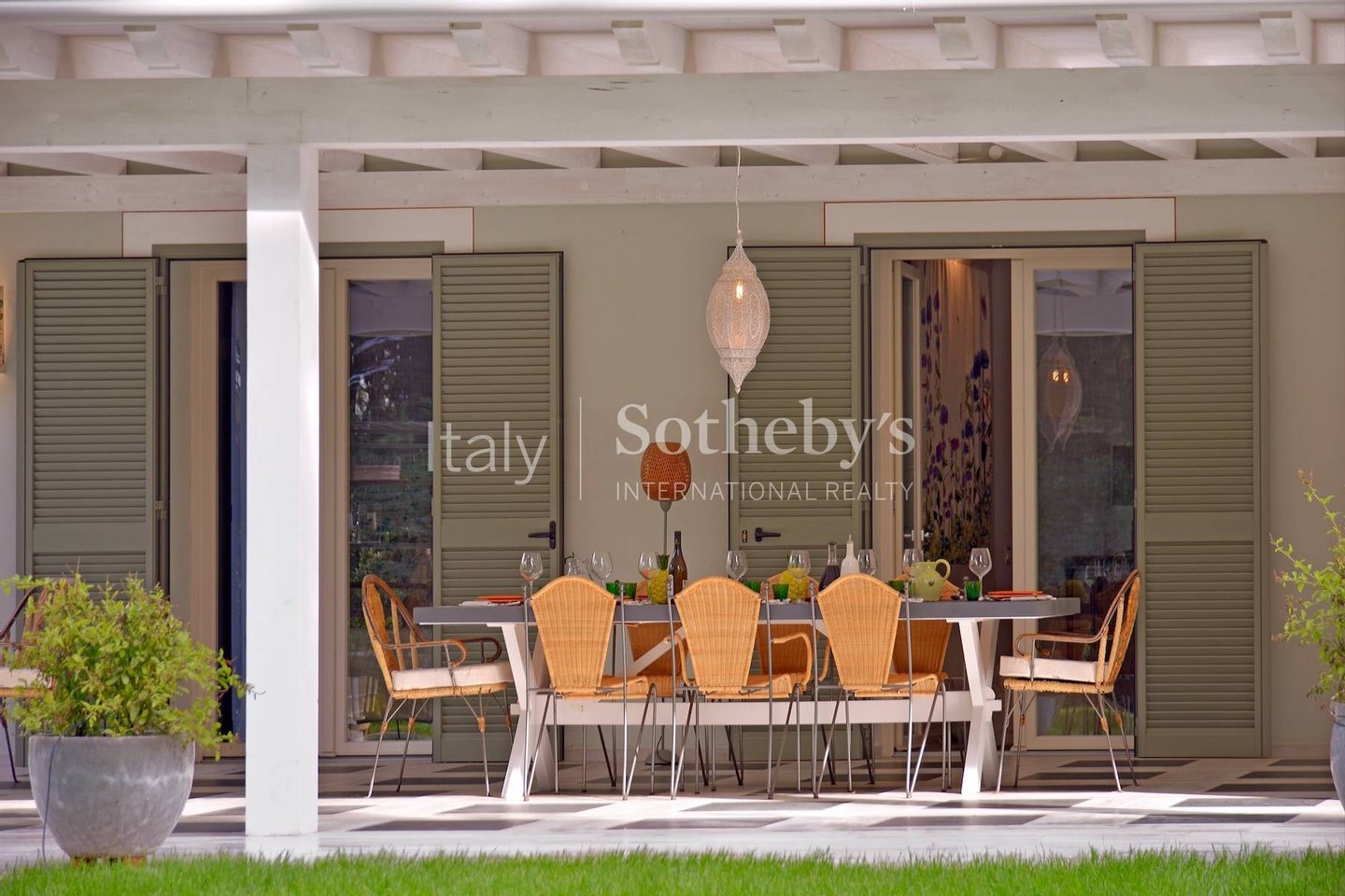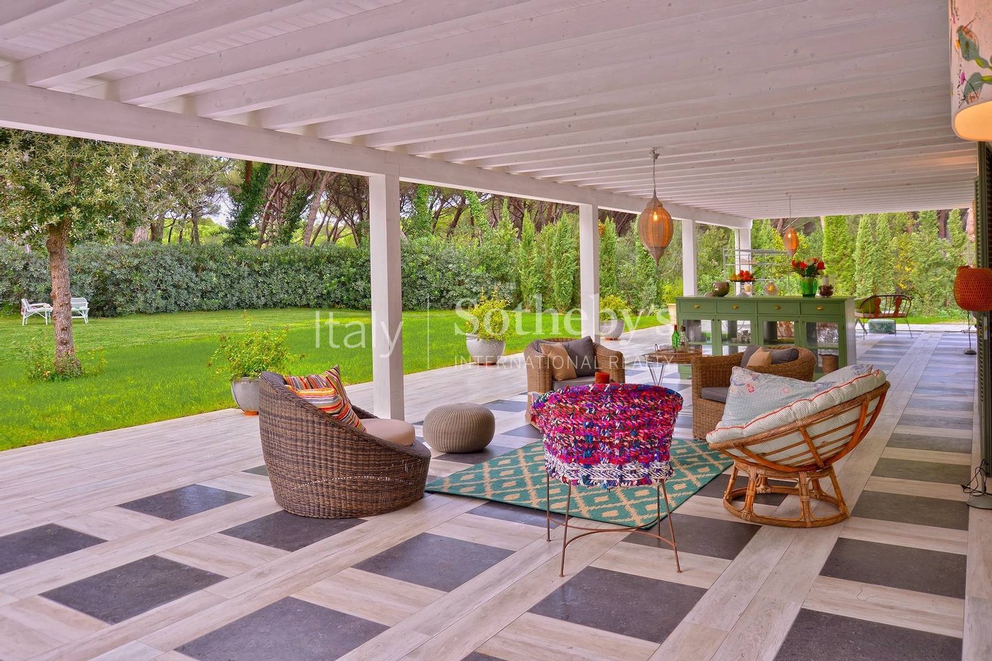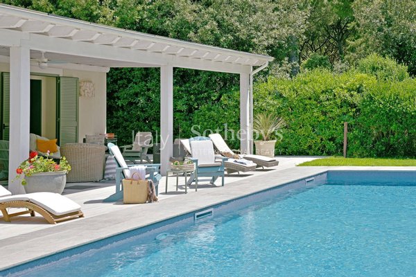 Villa La Loggia is located within a wonderful estate and features a spectacular veranda offering a spacious outdoor area. The floor, made of inlaid black marble tiles arranged in geometric patterns and set into bleached wooden planks, together with