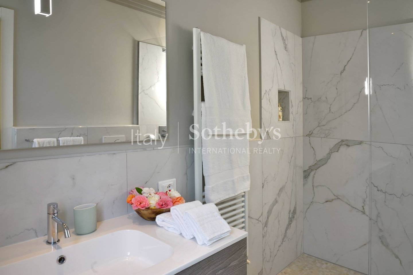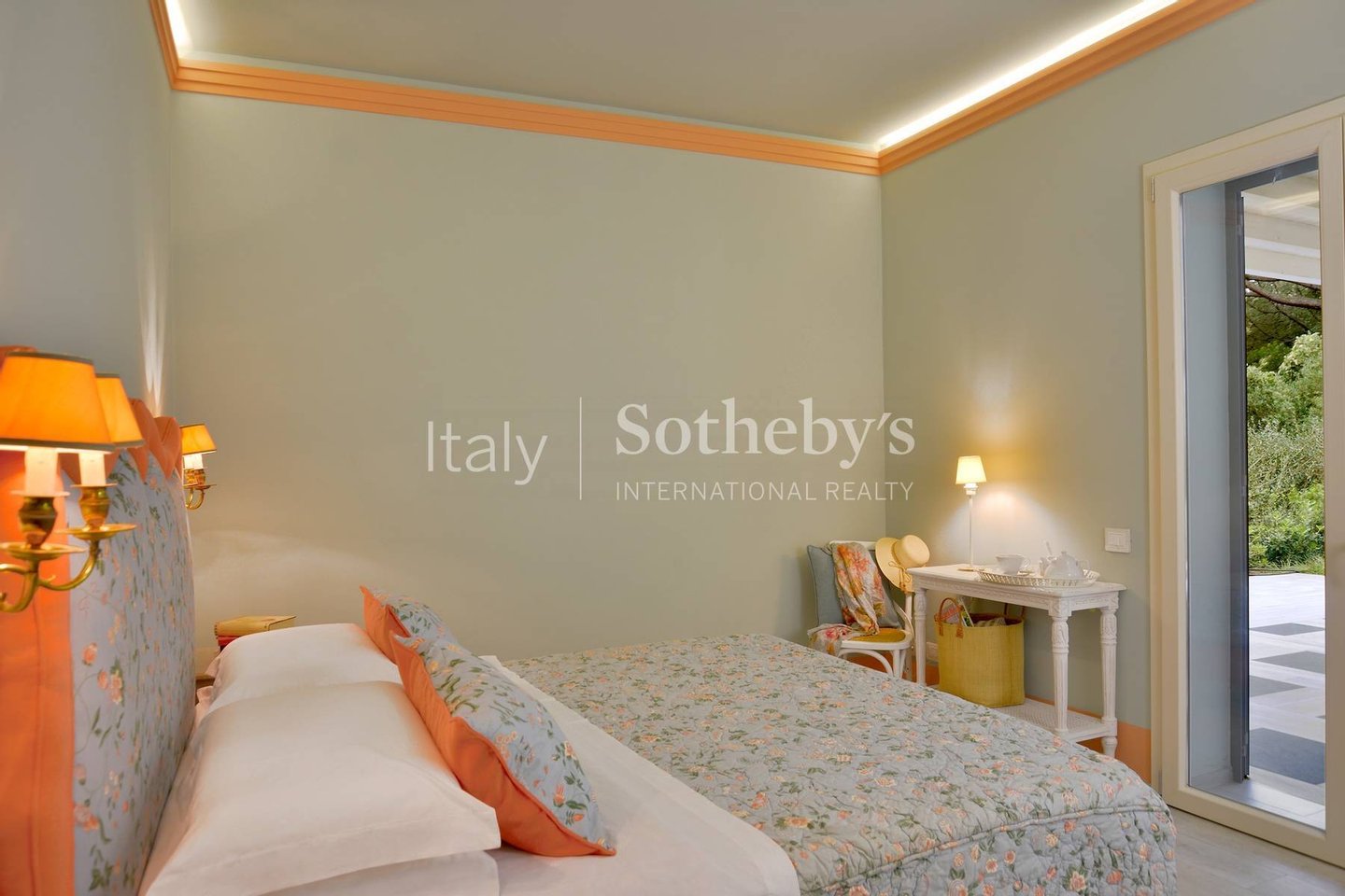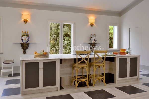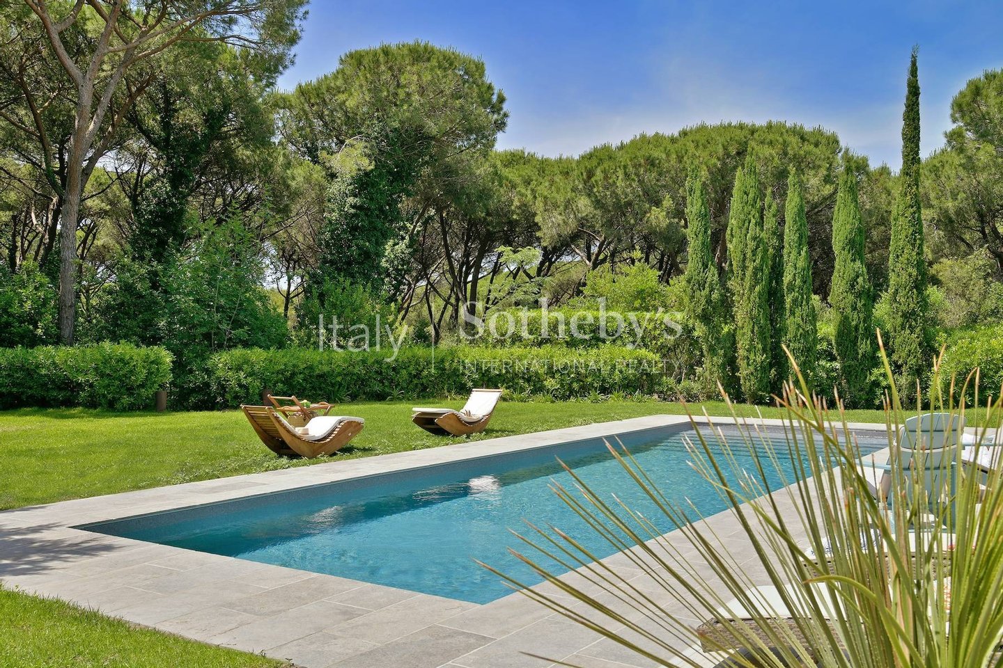 Villa La Loggia is located within a wonderful estate and features a spectacular veranda offering a spacious outdoor area. The floor, made of inlaid black marble tiles arranged in geometric patterns and set into bleached wooden planks, together with