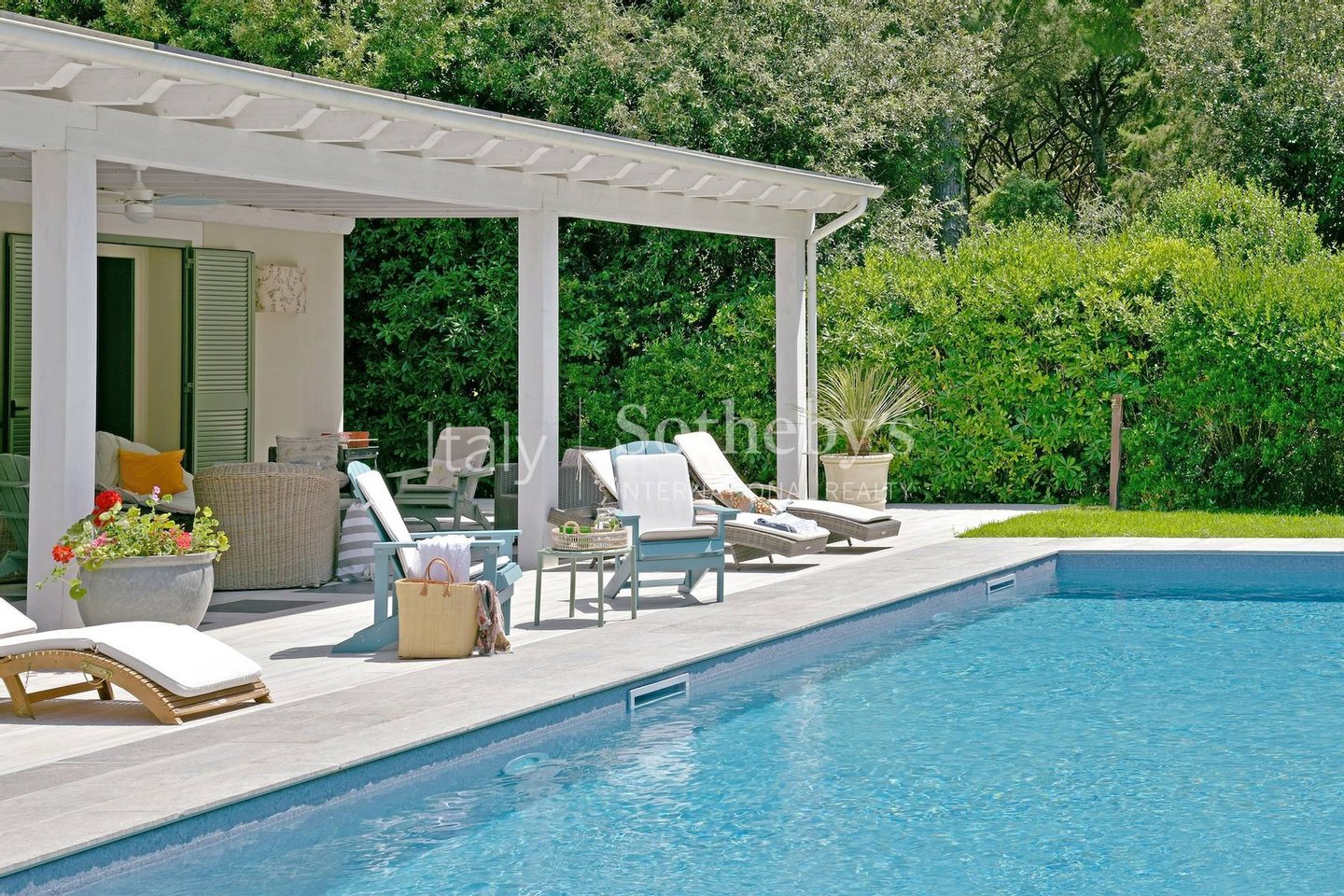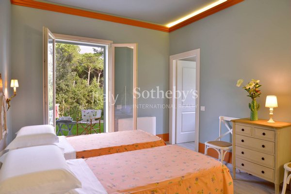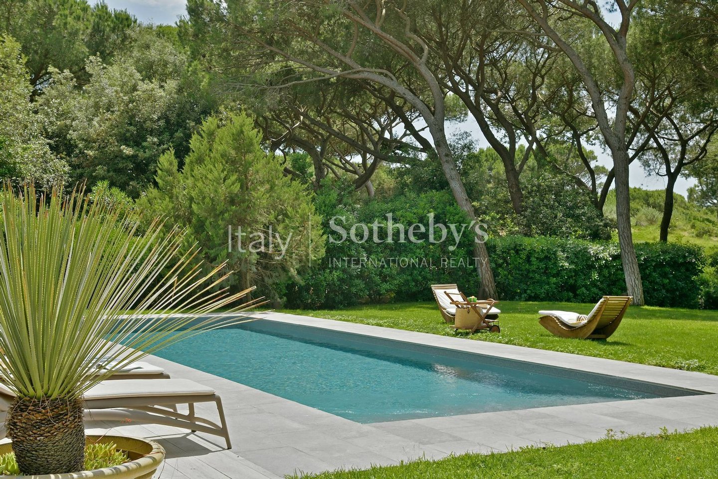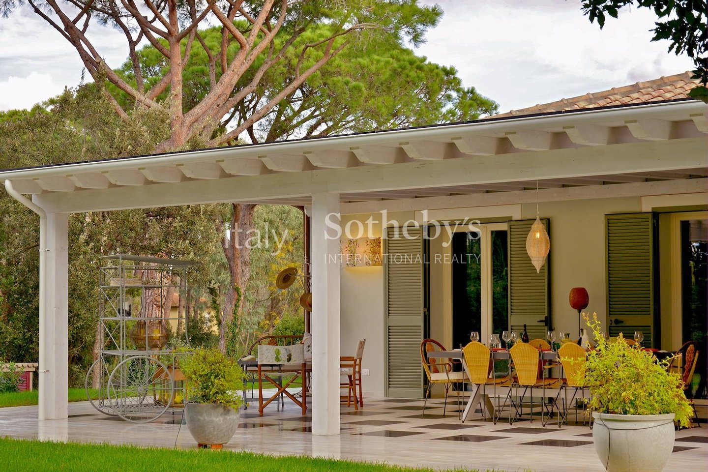 A private path winds through the estate's evocative pinewood and dunes, leading to the unspoiled public beach about 300 meters away. Access is through a private gate, beyond which guests can enjoy an exclusive beach cabin equipped with towels, sunbeds, and umbrellas - the perfect place to experience the Tuscan sea in total comfort and tranquility.