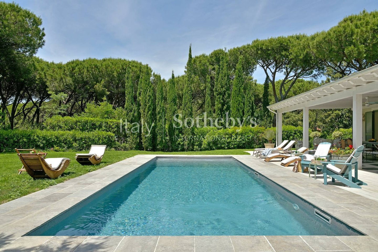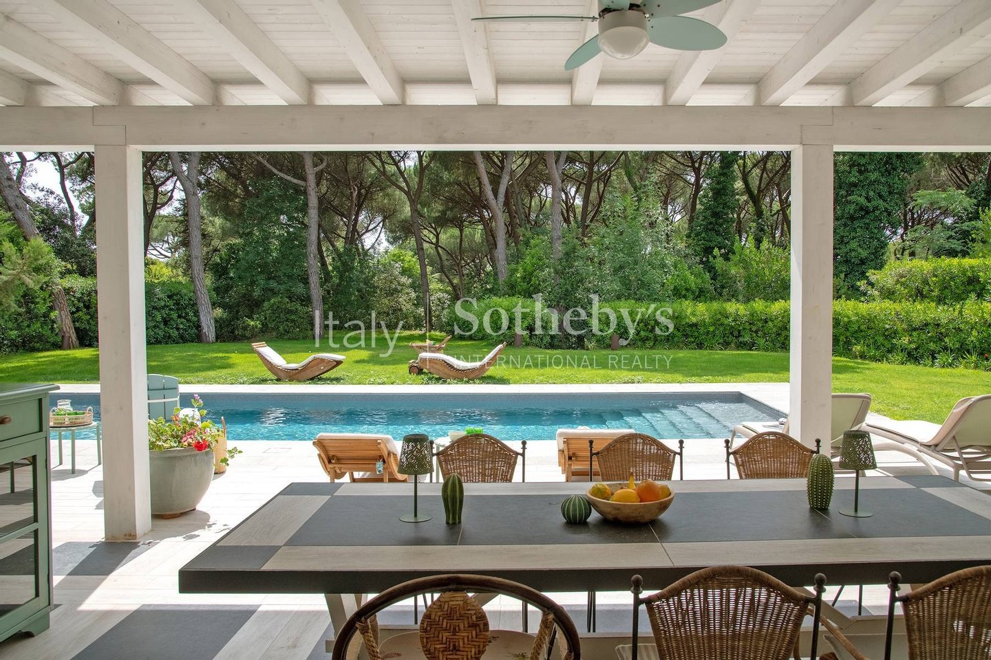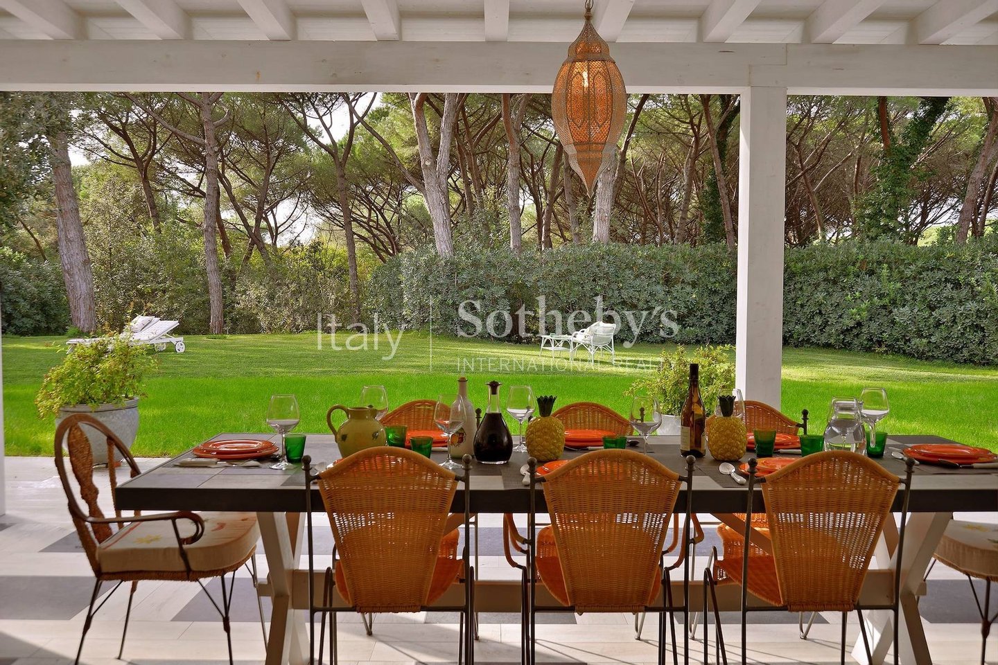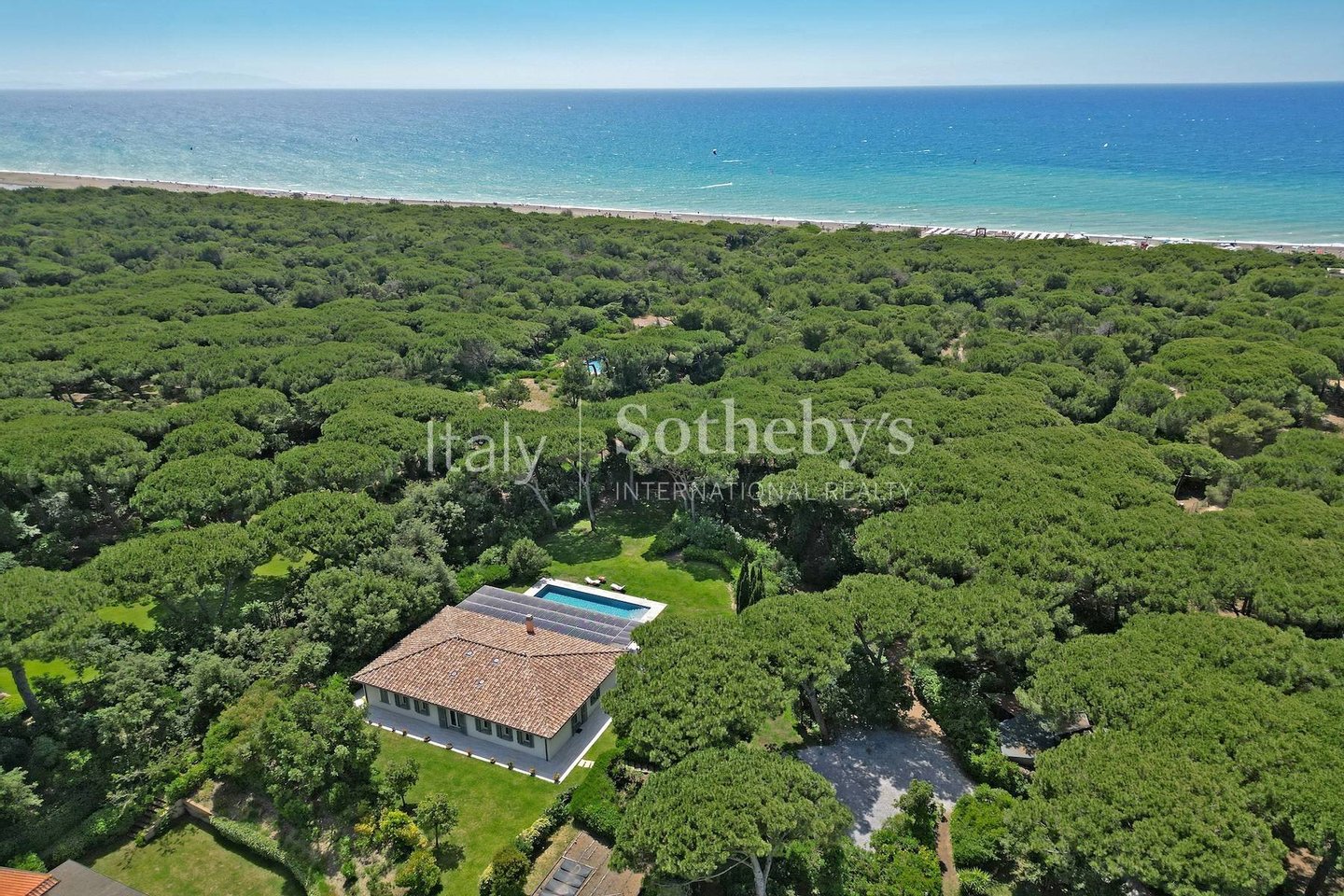 A private path winds through the estate's evocative pinewood and dunes, leading to the unspoiled public beach about 300 meters away. Access is through a private gate, beyond which guests can enjoy an exclusive beach cabin equipped with towels, sunbeds, and umbrellas - the perfect place to experience the Tuscan sea in total comfort and tranquility.