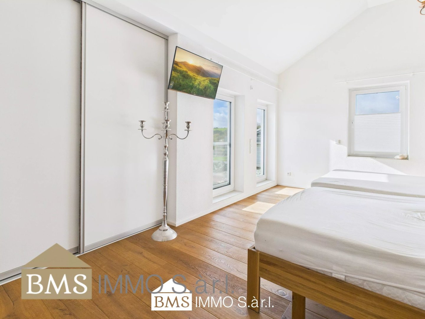 Die durchdachte Raumaufteilung bietet vier Zimmer darunter 2 Schlafzimmer, ein flexibel nutzbares Gästezimmer, welches alternativ auch als Büro nutzbar ist sowie ein großzügiges Wohn-und Esszimmer mit einer offenen Küche im italienischen Landhausstil. Ergänzt wird das Raumangebot durch ein stilvolles Hauptbad
