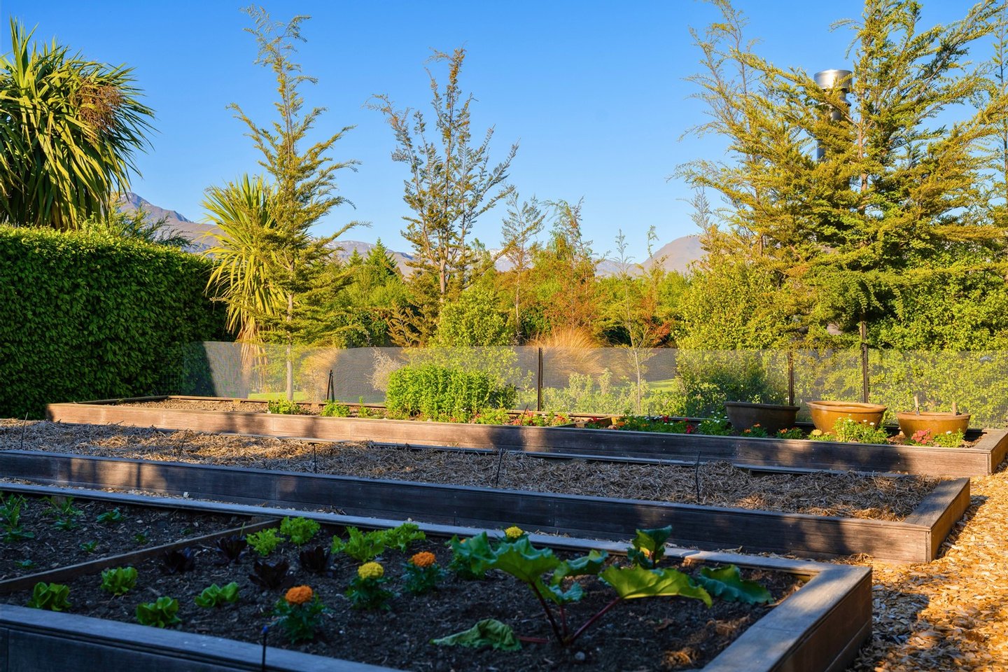- Der Produktionsgarten mit High-Tech-Gewächshaus, der zeitweise von preisgekrönten lokalen Restaurants für eine nachhaltige Paddock-to-Plate-Küche genutzt wird, bietet auch private kulinarische Erlebnisse, die in der versteckten halbkommerziellen Küche des Hauses zubereitet werden.