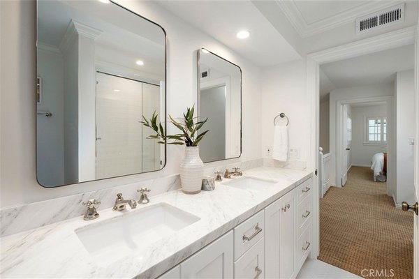 Diese frisch neu gestaltete Residenz im Nantucket-Stil befindet sich auf einem erstklassigen, übergroßen Grundstück am Meer und kombiniert den zeitlosen Charme der Ostküste mit der Schönheit der berühmtesten Küste von Newport Beach. Das Haus befindet sich in idealer Lage im geschätzten Viertel Peninsula Point und bietet sowohl eine erstklassige Adresse als auch einen Lebensstil, der von Surf, Sand und Küstenraffinesse geprägt ist. Das Haus, das durch einen blühenden Gartenhof erreichbar ist, balanciert Wärme und Privatsphäre mit der Leichtigkeit des Lebens im Innen- und Außenbereich aus. Großzügige Wohn-, Ess- und Küchenbereiche am Meer bilden das Herzstück des Hauses, wo Fenster den Blick auf das Wildwasser einrahmen und französische Türen direkt zu einer breiten Terrasse am Strand führen - der perfekte Rahmen, um im Freien zu speisen oder ein Glas Wein bei Sonnenuntergang mit Freunden zu genießen. Das Haus ist familienfreundlich gestaltet und verfügt über fünf Schlafzimmer, darunter eine durchdachte Gästeunterkunft im ersten Stock. Im Obergeschoss verfügt der primäre Rückzugsort am Meer über ein privates Büro/Wohnzimmer und eine weitläufige Terrasse am Meer mit einem Panorama von Sonnenaufgang bis Sonnenuntergang über dem Pazifik. Es gibt auch einen geräumigen Bonus-/Medienraum, der zusätzliche Flexibilität für Versammlungen, Arbeit oder Freizeit bietet. Eine übergroße Garage für zwei Autos mit zusätzlichem Außenparkplatz für zwei Autos bietet einen seltenen Komfort auf der Halbinsel. Das Leben auf Peninsula Point ist sowohl entspannt als auch lebendig: Morgens im The Wedge, Radtouren entlang der Promenade, nachmittags am Strand der Gemeinschaftsbucht oder im privaten Tennisclub und Abende, an denen Sie von Ihrer eigenen Terrasse aus beobachten können, wie die Sonne im Pazifik versinkt. Mit seinem seltenen übergroßen Grundstück, dem schlüsselfertigen Umbau und dem dauerhaften Charakter von Nantucket ist dieses Haus ein bezugsfertiges Angebot am Meer in einer der exklusivsten Küstengemeinden von Newport Beach.