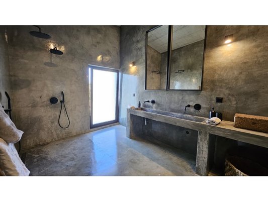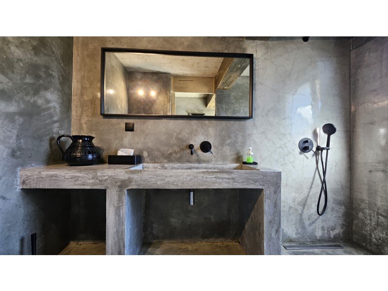 Im Obergeschoss befinden sich zwei elegante Suiten, jede mit eigenem Ankleidezimmer und eigenem Bad, mit raumhohen Fenstern, die die Natur wie wahre Kunstwerke einrahmen. Vom Bett aus öffnet sich jeder Blick auf ein beruhigendes Naturpanorama, als würde man ein lebendes Gemälde betrachten.