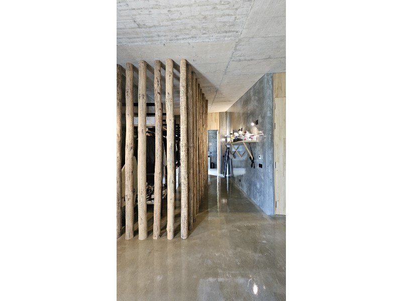 Das Haus zeichnet sich auch durch seine maßgefertigten Möbel aus, die perfekt an seine großen Volumen angepasst sind.