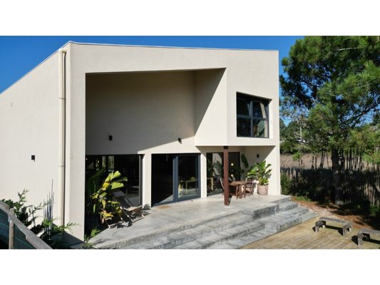 Dieses außergewöhnliche Anwesen liegt nur 2 km vom Strand Mexilhoeira und 4 km von Santa Cruz entfernt und kombiniert kühne Architektur, edle Materialien und spektakuläre Wohnräume.