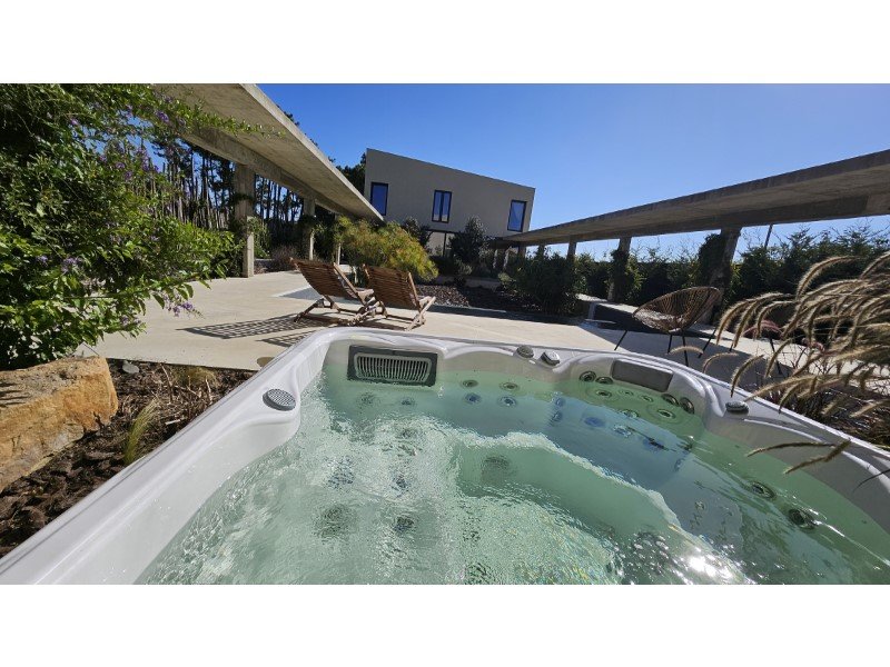 Das Anwesen wurde entworfen, um unvergleichlichen Komfort und bemerkenswerte Ästhetik zu bieten, und besteht aus zwei modernen Häusern, die durch einen ruhigen Außenbereich mit Whirlpool, japanischem Garten und Salzwasser-Infinity-Pool verbunden sind.
