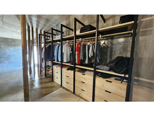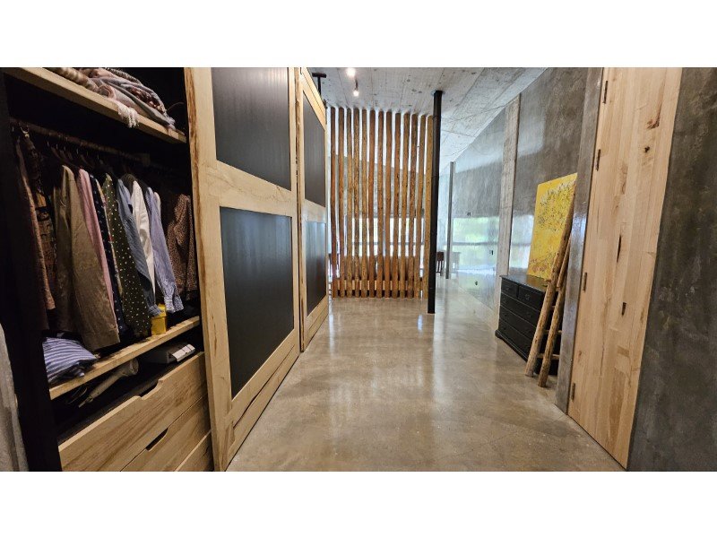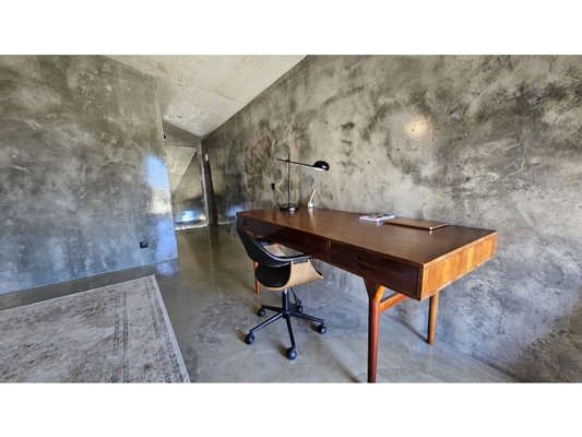 Das Haus zeichnet sich auch durch seine maßgefertigten Möbel aus, die perfekt an seine großen Volumen angepasst sind.