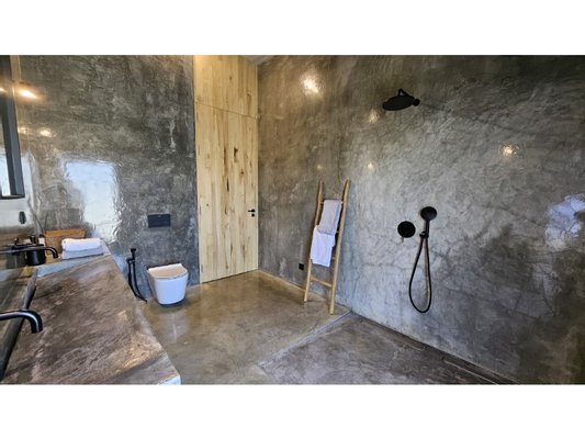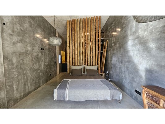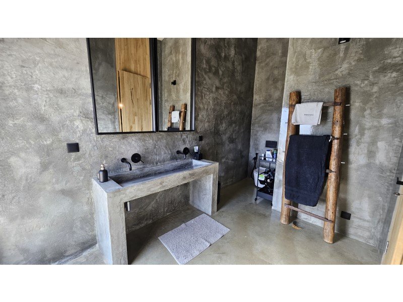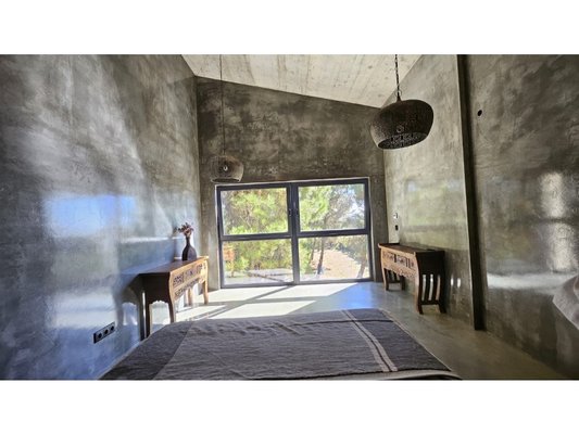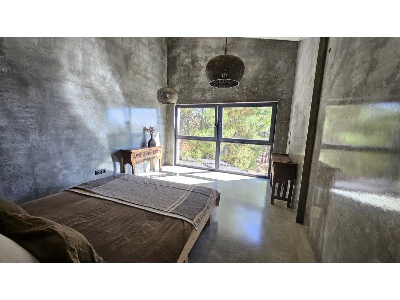 Im Obergeschoss befinden sich zwei elegante Suiten, jede mit eigenem Ankleidezimmer und eigenem Bad, mit raumhohen Fenstern, die die Natur wie wahre Kunstwerke einrahmen. Vom Bett aus öffnet sich jeder Blick auf ein beruhigendes Naturpanorama, als würde man ein lebendes Gemälde betrachten.