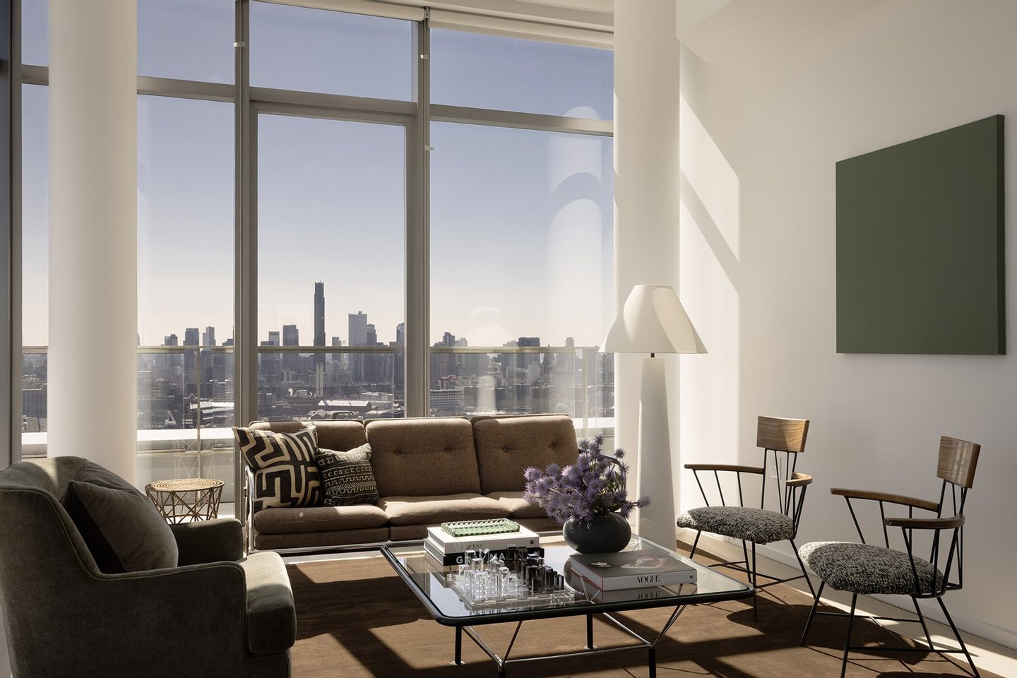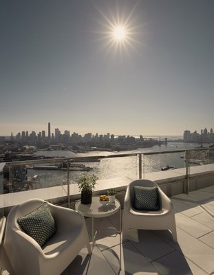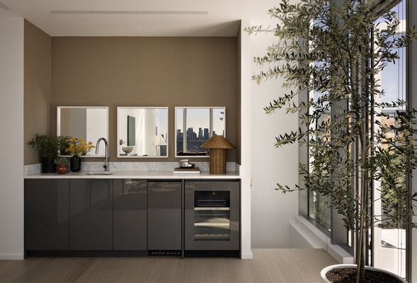 Sofortige Belegung. One Domino Square, Brooklyn verfeinert. Dieses weitläufige, 2.443 Quadratmeter große Penthouse-Duplex mit drei Schlafzimmern und dreieinhalb Badezimmern definiert luxuriöses Wohnen neu. Mit seinem anspruchsvollen Interieur und seinem atemberaubenden Panoramablick bietet es einen ungehinderten Blick nach Süden und Osten auf die ikonische Freiheitsstatue sowie faszinierende Szenen der Skyline von Brooklyn und Manhattan. Das Herzstück des Hauses ist der offene Wohn- und Essbereich, der von hohen Deckenhöhen und raumhohen Fenstern eingerahmt wird, die den Raum mit natürlichem Licht durchfluten. Jedes Schlafzimmer ist durchdacht gestaltet und verfügt über ein eigenes Bad, das Privatsphäre und Komfort gewährleistet, während das Hauptbad über eine freistehende Badewanne mit Blick auf die East River-Brücken und den New Yorker Hafen verfügt. Die obere Ebene verfügt über eine elegante Wet-Bar und einen exklusiven Unterhaltungsbereich, der zur ruhigen Hauptsuite führt, die sich auf eine 674 Quadratmeter große, private, umlaufende Terrasse öffnet - Ihre persönliche Oase im Himmel. Das Penthouse PH1C ist ein seltenes Juwel, das unvergleichliches Design, außergewöhnliche Annehmlichkeiten und ikonische Ausblicke kombiniert. Die übergroßen, schallunterdrückenden Dreh-Kipp-Fenster lassen das Sonnenlicht über die breiten weißen Eichenböden fallen, während Solar- und Verdunkelungsrollos für Ruhe und Privatsphäre sorgen. 10 1/2 Fuß hohe Decken verleihen großzügigen Raumproportionen Volumen, während Kingsize-Schlafzimmer Standard sind. Erleben Sie die feinsten Details mit maßgefertigten Fräsarbeiten und Beleuchtungen aus Nussbaumholz in jedem Schrank, dimmbarer Deckenbeleuchtung, Nest Thermostaten für jede Zone und USB/USB-c-Steckdosen an jedem Bett. Italienische Küchen gibt es in zwei unterschiedlichen Farbtönen mit warmen Tönen wie Teakholzschränken, Carrara-Marmor und ölgeriebenem Metzgerblock oder kühl getöntem Hochglanzlack, gepaart mit Lavastein-Wasserfall-Arbeitsplatten. Alle Häuser verfügen über eine Reihe von voll integrierten Gaggenau-Geräten, darunter einen Schnellofen und ein hochmodernes Induktionskochfeld sowie eine Dunstabzugshaube und einen Weinkühlschrank. Ensuite-Hauptbadezimmer entspannen die Sinne mit beheizten Fußböden und mit Flussstein verkleideten Wänden. Eine bordsteinlose, verglaste Dusche mit Infinity-Ablauf bietet thermostatisch gesteuerte Hand- und Regenduschen in gebürstetem Nickel von Phylrich verstärken den Spa-ähnlichen Effekt. Zu den letzten Schliffen gehören Robern Medikamentenschränke über Doppelwaschtischen und eine Stromquelle für den Anschluss des Bidetsitzes. Charme versprüht die Gästetoiletten, in denen individuelle Vertäfelungen und ausgewählte Oberflächen aus der Vica-Kollektion von Annabelle Selldorf ausgestellt sind. Die Annehmlichkeiten und Dienstleistungen im 1DSQ sind mit über 45.000 Quadratmetern sonnendurchfluteter Innenräume und Terrassen auf fünf Etagen beispiellos. Der Innenpool im Freien verfügt über Bahnbahnen und Sitzbereiche in einem grünen Spa-Ambiente mit Whirlpool, kaltem Tauchbecken, Dampfbad, Sauna, Behandlungsräumen und einer ganzjährig geöffneten Loggia mit Blick auf die Freiheitsstatue. Ein zweiter beheizter Pool, dieser im Freien, verfügt über eine Terrasse im Resort-Stil mit Liegestühlen, Essbereichen und Außenduschen. Das gut ausgestattete Fitnesscenter umfasst ein Yoga-Studio am Flussufer und ein hochintensives Trainingsstudio, in dem Kurse angeboten werden. Eine dritte parkähnliche Terrasse bietet Essnischen im Freien mit Grills, Außenküchen und Blick auf Midtown Manhattan. Ein Spielzimmer, ein Medienraum, ein Solarium und viel Platz zum Arbeiten von zu Hause aus nehmen einen Großteil der Club-Etage ein, wo die Eigentümer von Eigentumswohnungen auch Zugang zu privaten Speise- und Partyräumen am Wasser haben. One Domino Square ist eine neue architektonische Ikone am Wasser mit einer ätherischen Porzellanfassade, die den sich ständig verändernden Himmel auf der perlmuttartigen Oberfläche reflektiert. Das Design steht an der Spitze der Nachhaltigkeit und wurde entwickelt, um die Widerstandsfähigkeit der Küste zu maximieren. Der Turm steht an der Kreuzung des weltberühmten Domino Parks und des Domino Square - ein ein Hektar großer Platz mit Eislaufen, Restaurants und Landschaftsgestaltung von James Corner Field Operations. Two Trees ist stolz darauf, weiterhin unglaubliche Einzelhandels-, Restaurant- und Kulturräume auf dem Domino-Campus und an der Uferpromenade von Williamsburg zu schaffen.