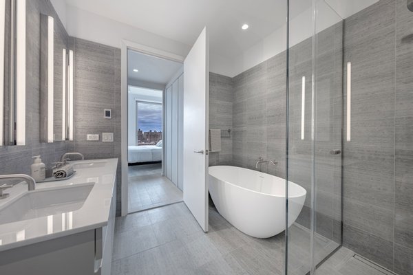 Jede Eigentumswohnung in One Domino Square bietet geschützte Ausblicke auf den East River, der einfach atemberaubend ist. Die übergroßen, schallunterdrückenden Kipp- und Drehfenster lassen Sonnenlicht über breite, weiße Eichenböden strömen, während Solar- und Verdunkelungsrollos für Ruhe und Privatsphäre bereitgestellt werden. Die Innenräume sind bis ins kleinste Detail durchdacht, mit maßgefertigter Walnussholz-Sägerei und Beleuchtung in jedem Schrank, dimmbarer Deckenbeleuchtung in jedem Raum, Nest-Thermostaten für jede Zone und USB/USB-C-Steckdosen an jedem Bett.