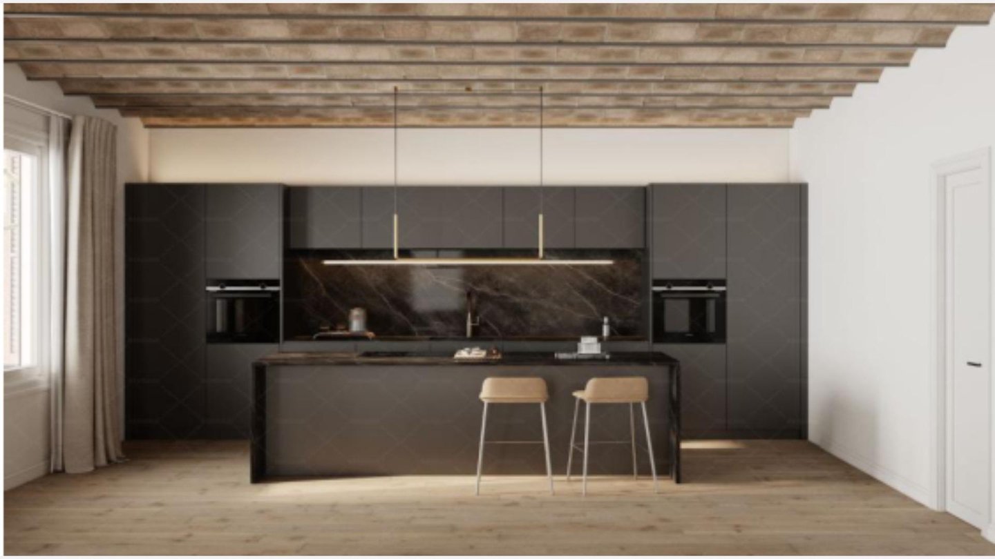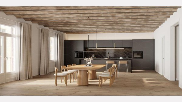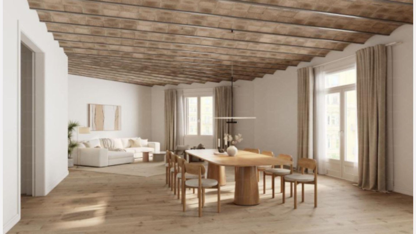 The apartment has undergone a complete renovation that masterfully combines the preservation of original features—such as the high ceilings with handcrafted cornices and the Catalan vaulted ceiling—with top-quality contemporary finishes, creating a sophisticated, warm, and welcoming atmosphere.