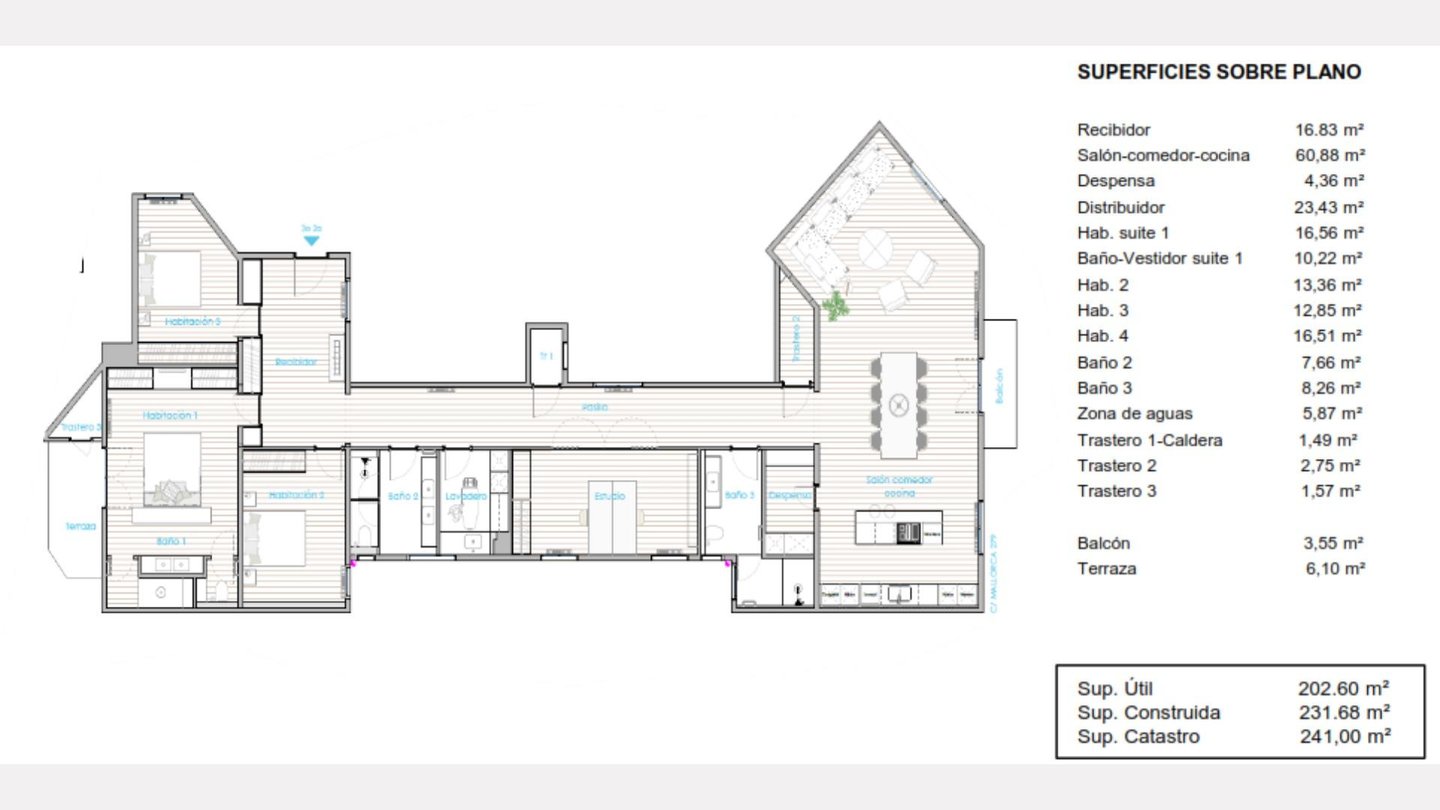 The living area features a spectacular 61 m2 living-dining room with a Catalan vaulted ceiling, a balcony overlooking Pau Claris Street, and two large windows that flood the space with natural light. The integrated kitchen with a central island, fully equipped with high-end Miele appliances (including a wine cooler), offers a practical, elegant, and functional environment, perfect for enjoying everyday life. This area is completed by a large separate pantry, an additional storage room, and a full bathroom.