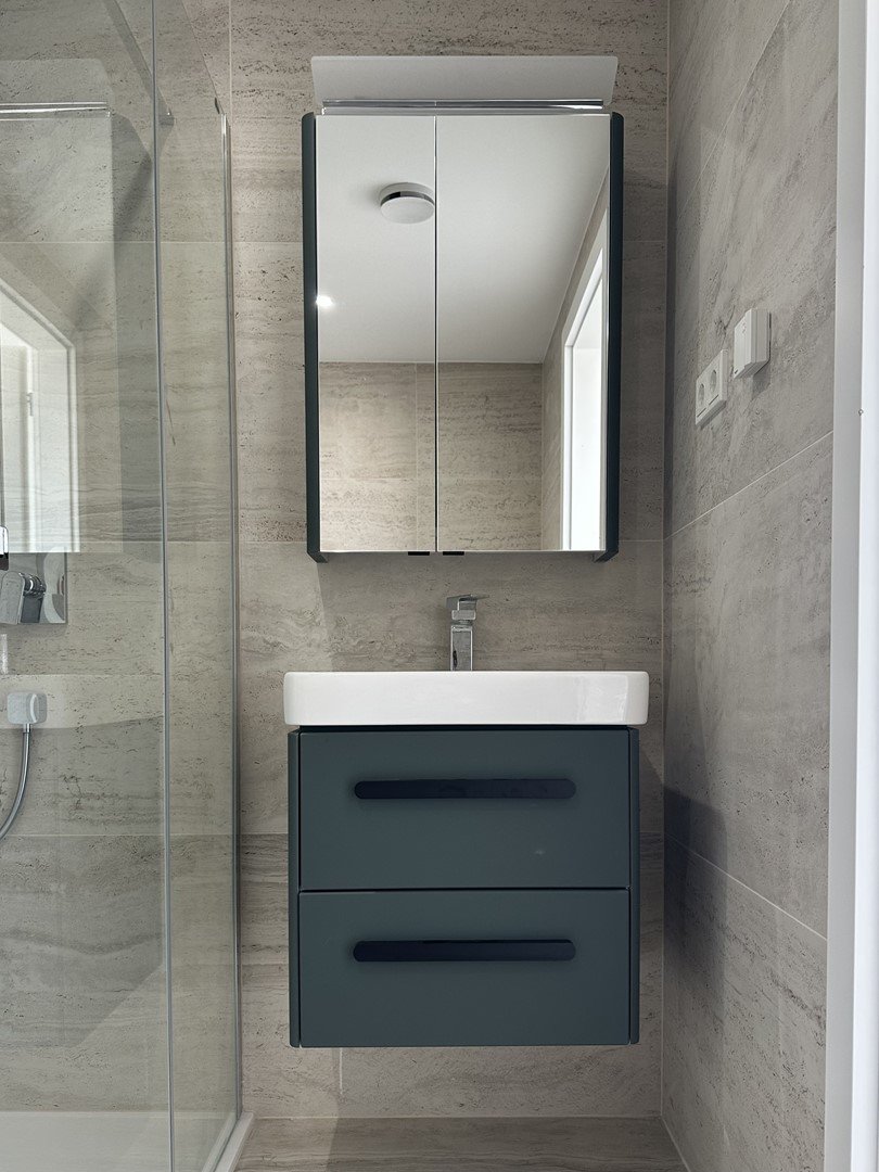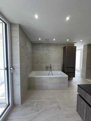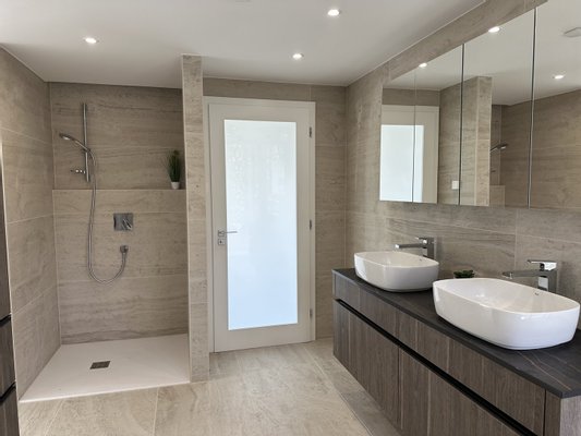 Die untere Ebene der Wohnung verfügt über 3 Zimmer, 3 Toiletten und 2 Badezimmer.