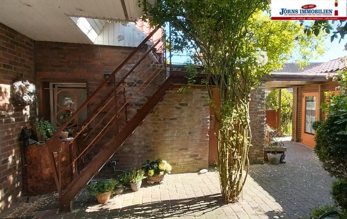 Das Dachgeschoss verfügt über eine kuschelige Ferienwohnung mit Duschbad, 2 Schlafzimmer, Küche mit Essbereich und Wohn-/Schlafbereich mit Dachterrasse. Das Dachgeschoss verfügt über eine niedrige Deckenhöhe von ca. 2,00 m. Die Ferienwohnung erreicht man über eine zusätzliche Außentreppe.