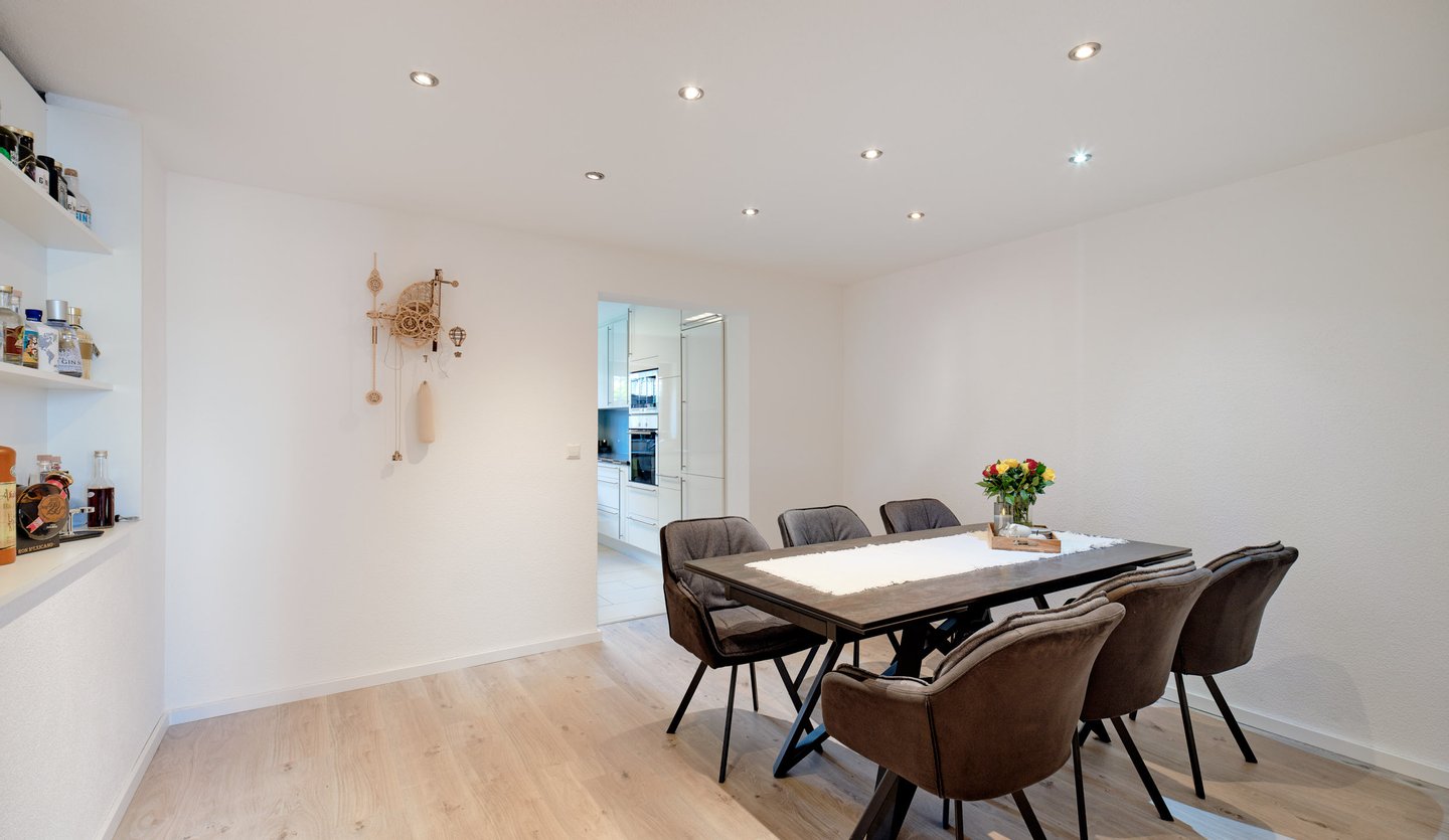 Die moderne Einbauküche angrenzend an den Essbereich ist im Kaufpreis enthalten und fügt sich stilvoll in das Gesamtbild ein – ideal für gesellige Kochabende. Zwei gut geschnittene Schlafzimmer bieten ausreichend Platz für Familie, Homeoffice oder Gäste.