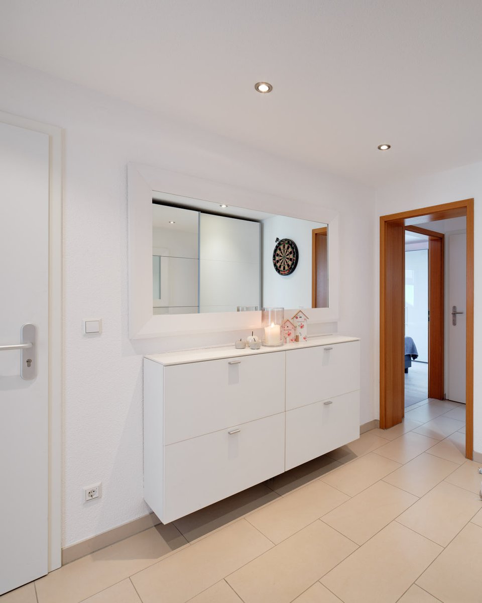 Empfangen werden Sie im Eingangsbereich der offen gestaltet wurde und ausreichend Platz für eine große Garderobe bietet.