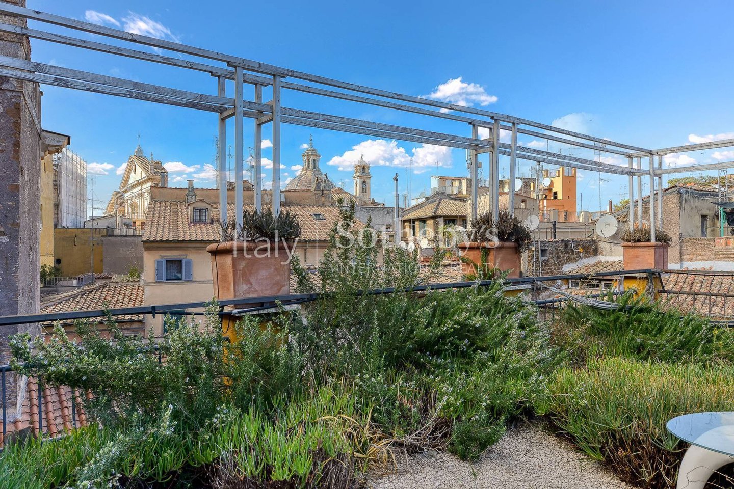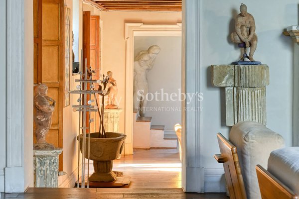 The property, spanning approximately 302 sqm (3,250 sq.ft) of interior space and 72 sqm (775 sq.ft) of outdoor areas - including terraces, balconies, and two spectacular rooftop gardens nestled among Rome's rooftops - is accessed via a magnificent granite staircase opening onto an elegant internal courtyard with loggia and portico.