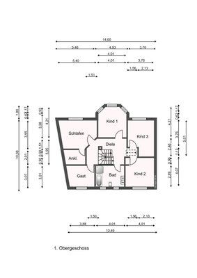 Im Obergeschoss erwarten Sie fünf gut geschnittene Zimmer und ein großzügiges Badezimmer. Die Räume lassen sich flexibel als Schlaf-, Kinder-, Arbeits- oder Gästezimmer nutzen – ganz nach Ihren Bedürfnissen.