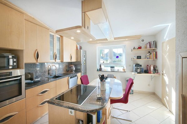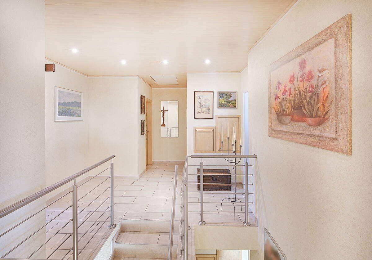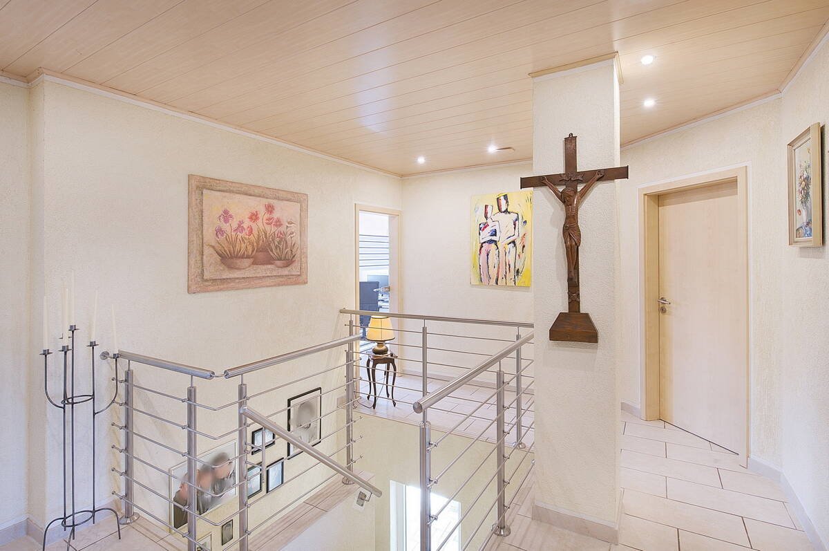 Bereits die breite Einfahrt mit elektrischem Tor und die große Doppelgarage unterstreichen den exklusiven Charakter dieser Immobilie. Das Haus selbst bietet mit seiner durchdachten Raumaufteilung reichlich Platz – ideal auch für eine große Familie.
