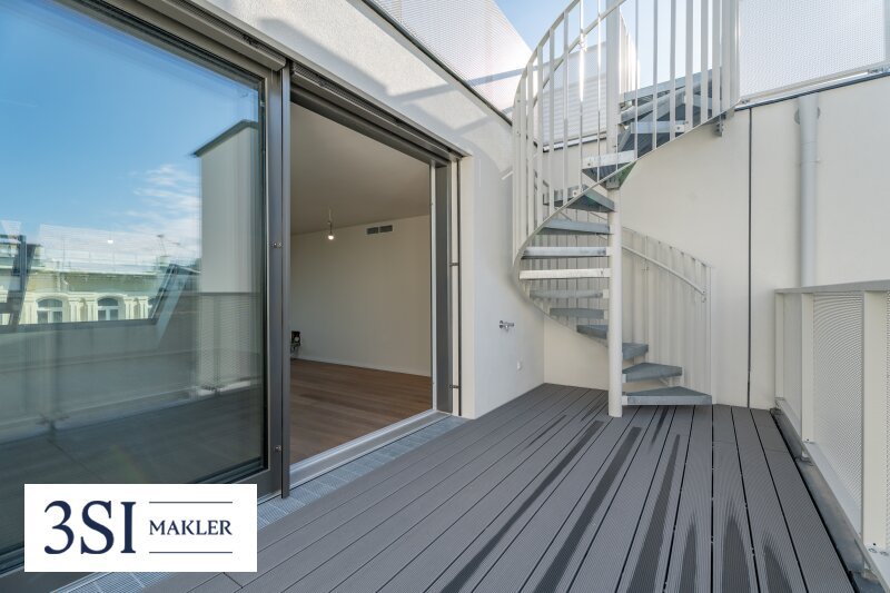 - Private Dachterrasse (ca. 55 m²) – über eine elegante Wendeltreppe erreichbar