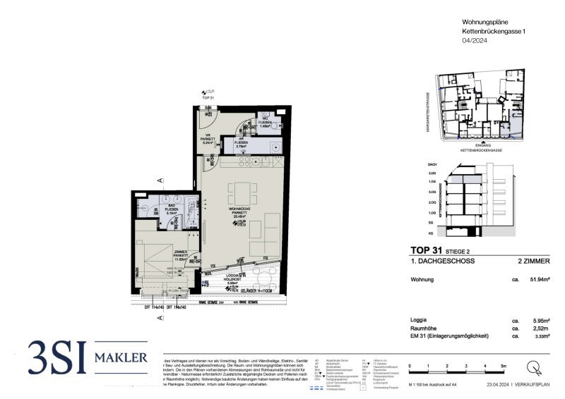 Die 2-Zimmer-Wohnung befindet sich im 1. Dachgeschoss und bietet eine Wohnfläche von ca. 52 m² sowie eine Loggia mit rund 6 m². Dank der durchdachten Raumaufteilung, der hochwertigen Ausstattung und des direkten Loggiazugangs entsteht ein modernes Wohngefühl mit besonderem Wohlfühlcharakter.