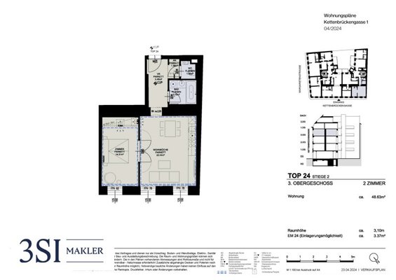 die moderne 2-Zimmer-Wohnung befindet sich im 3. Obergeschoss und bietet eine Wohnfläche von ca. 49 m². Dank der gut geplanten Raumaufteilung und hochwertigen Ausstattung überzeugt sie mit Komfort, Funktionalität und einem angenehmen Wohnambiente – ideal für Singles oder Paare.