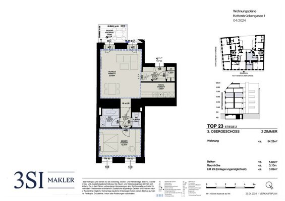 Die moderne 2-Zimmer-Wohnung befindet sich im 3. Obergeschoss und bietet eine Wohnfläche von ca. 54 m² sowie einen Balkon mit rund 6 m². Durchdachte Planung, lichtdurchflutete Räume und hochwertige Ausstattung sorgen für ein angenehmes Wohngefühl und zeitgemäßen Komfort.
