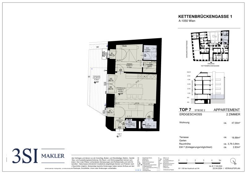 Die 2-Zimmer-Gartenwohnung befindet sich im Erdgeschoss und bietet eine Wohnfläche von ca. 47 m² sowie eine großzügige Terrasse mit rund 17 m². Durch die durchdachte Raumaufteilung und den direkten Zugang ins Freie entsteht ein harmonisches Wohngefühl mit hohem Komfort.