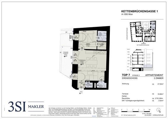 Der guten Ordnung halber halten wir fest, dass, sofern im Angebot nicht anders vermerkt, bei erfolgreichem Abschlussfall eine Provision anfällt, die den in der Immobilienmaklerverordnung BGBI. 262 und 297/1996 festgelegten Sätzen entspricht – das sind 3 % des Kaufpreises zzgl. 20% USt. Diese Provisionspflicht besteht auch dann, wenn Sie die Ihnen überlassenen Informationen an Dritte weitergeben. Letztlich weisen wir darauf hin, dass wir als Doppelmakler tätig sind und ein familiäres/wirtschaftliches Naheverhältnis zwischen der 3SI Makler GmbH und der Verkäuferin besteht.