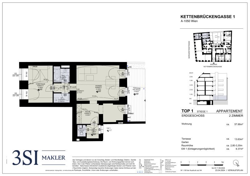 Der guten Ordnung halber halten wir fest, dass, sofern im Angebot nicht anders vermerkt, bei erfolgreichem Abschlussfall eine Provision anfällt, die den in der Immobilienmaklerverordnung BGBI. 262 und 297/1996 festgelegten Sätzen entspricht – das sind 3 % des Kaufpreises zzgl. 20% USt. Diese Provisionspflicht besteht auch dann, wenn Sie die Ihnen überlassenen Informationen an Dritte weitergeben. Letztlich weisen wir darauf hin, dass wir als Doppelmakler tätig sind und ein familiäres/wirtschaftliches Naheverhältnis zwischen der 3SI Makler GmbH und der Verkäuferin besteht.