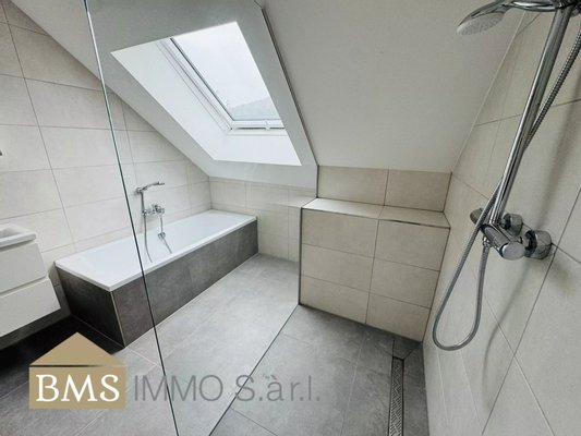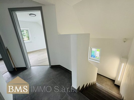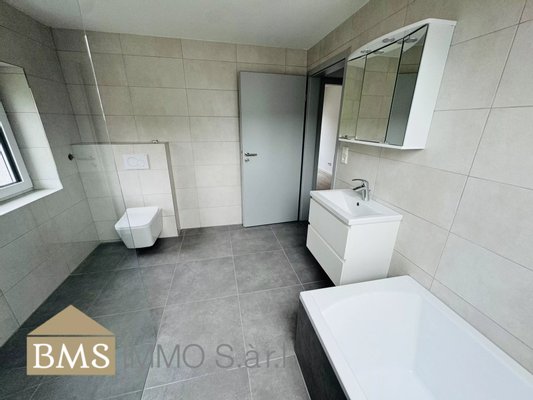 Auf drei Etagen steht ihnen eine Wohnfläche von ca. 112 m² zur Verfügung. Eine zusätzliche Nutzfläche von ca. 60 m² im Kellergeschoss teilt sich auf zwei Kellerräume und einen Technikraum, in dem sich die Wärmepumpe befindet, auf. Diese Räumlichkeiten eignen sich hervorragend als Abstellfläche. Im Erdgeschoss befindet sich der große Wohn-/ Ess- und Küchenbereich, an den ein kleiner Abstellraum angrenzt, sowie das Duschbad mit Tageslicht. Im Dachgeschoss steht ihnen ein weiteres Badezimmer mit Dusche und Badewanne, sowie drei Schlafzimmer und ein Balkon zur Verfügung. Drei Garagen neben dem Haus gehören zur Immobilie dazu. Hinter dem Haus befindet sich eine schöne Terrasse, auf welcher Sie in Ruhe und in schöner Umgebung viele Stunden im Freien verbringen können. Das Grundstück umfasst ca. 400 m² Fläche und das Einfamilienhaus punktet vorallem durch die ruhige, aber dennoch zentrale Lage. Sie erreichen die Luxemburger Stadt Echternach von hier aus in nur wenigen Gehminuten zu Fuß. Machen Sie sich selbst ein Bild dieser Immobilie und vereinbaren Sie jetzt einen Besichtigungstermin!