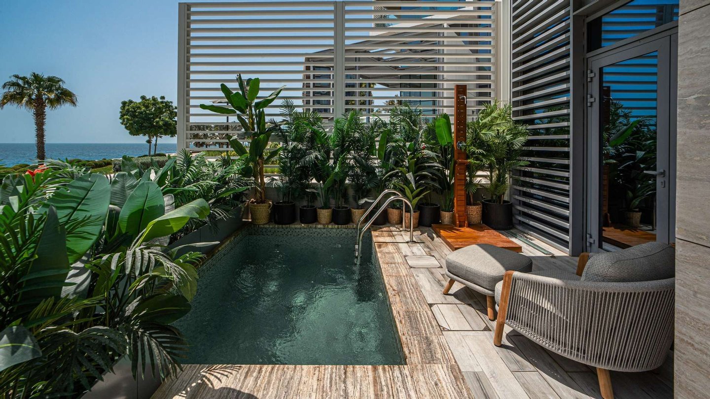 Herzlich willkommen in Ihrem Traumreihenhaus! Betreten Sie ein voll möbliertes Zuhause, das mit einem Wohnzimmer mit doppelter Höhe und beeindruckenden 6-Meter-Decken aufwartet. Die große Terrasse mit Privatpool bietet Ihnen atemberaubenden Meerblick, der zum Entspannen einlädt. Genießen Sie den Luxus eines Dienstmädchenzimmers sowie eines Lagerraums, der zusätzlichen Stauraum bietet.