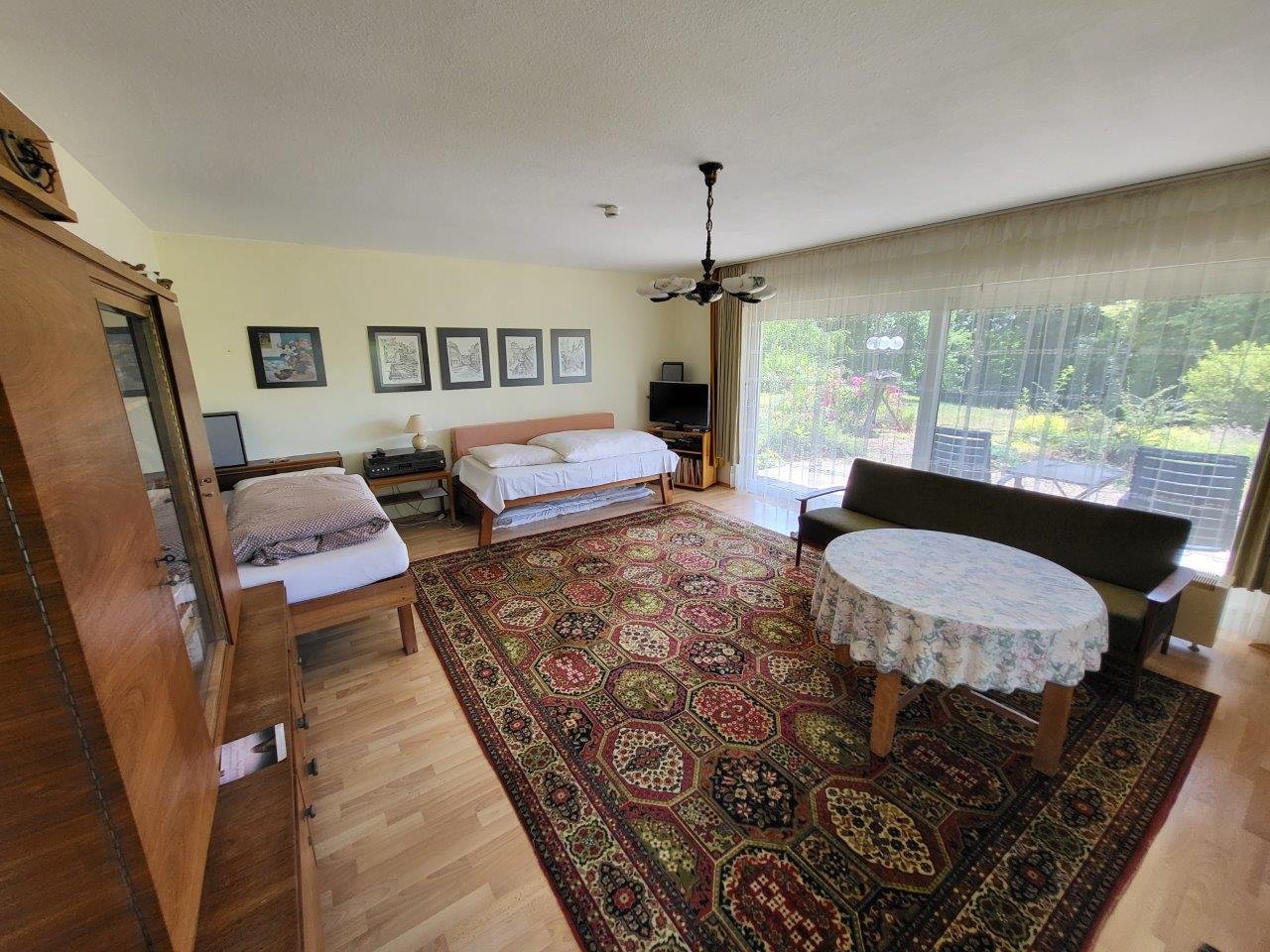 Das hier angebotene, voll unterkellerte und sofort bezugsfreie, Einfamilienhaus mit kleiner Einliegerwohnung befindet sich in absoluter Bestlage von Hof-Krötenbruck. Es wurde im Jahre 1979 in Massivbauweise erbaut und teilt sich auf ca. 185 m² Wohnfläche im Erdgeschoss und 1. Obergeschoss derzeit wie folgt auf: Im Erdgeschoss befinden sich der großzügige Eingangsbereich mit Windfang, Treppenhaus und einer Garderobe, ein großer Wohnbereich mit Esszimmer und Ausgang auf den ca. 30 m² großen Balkon, die Küche mit Abstellraum, ein Bibliothekszimmer, welches auch als Schlafzimmer oder als Arbeitszimmer genutzt werden kann, sowie ein Badezimmer. Im 1. Obergeschoss stehen ein großes, durchaus auch in 2 Räume teilbares, Schlafzimmer mit zus. Ankleidezimmer und Balkon, ein weiteres Zimmer sowie ein großes Bad zur Verfügung. Im Souterrain befindet sich u.a. ein großer Hobbyraum und ein erweiterbares Einliegerappartement (mit sep. Eingang und perfekt für größere Kinder, Oma, Opa, Pflegekräfte, als Büro, ...) mit einem Wohn- und Schlafbereich, einer kleinen Küche und einem Duschbad. Der Gesamtzustand des Hauses ist gut, wobei wir aber nicht verschweigen wollen, dass die eine oder andere Modernisierungsmaßnahme durchaus anstehen wird. Beheizt wird das Haus durch eine Ölzentralheizung.