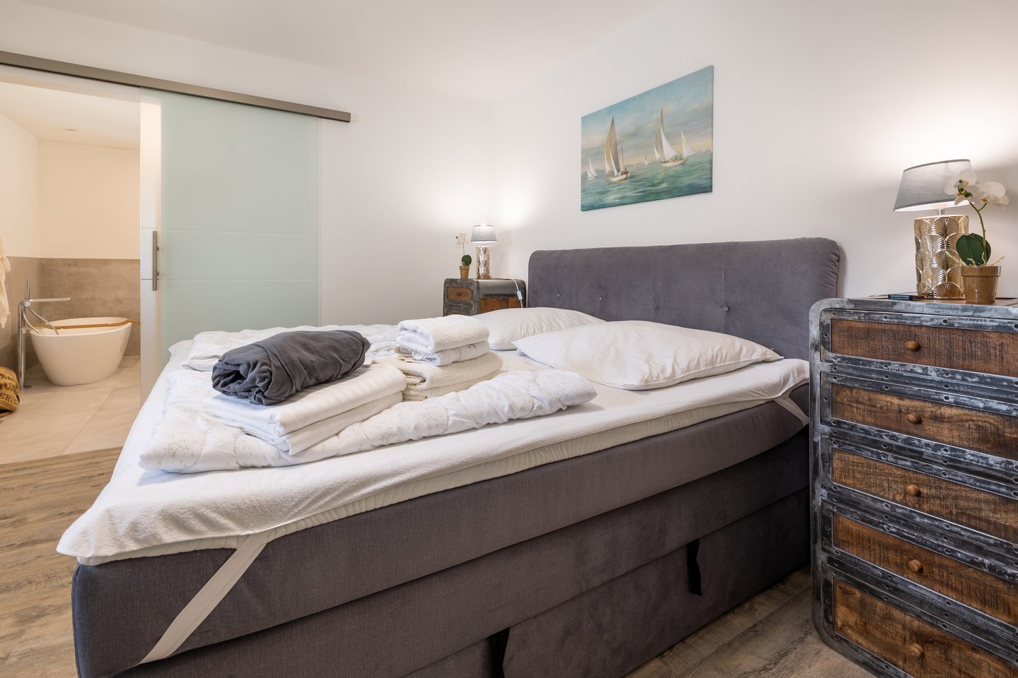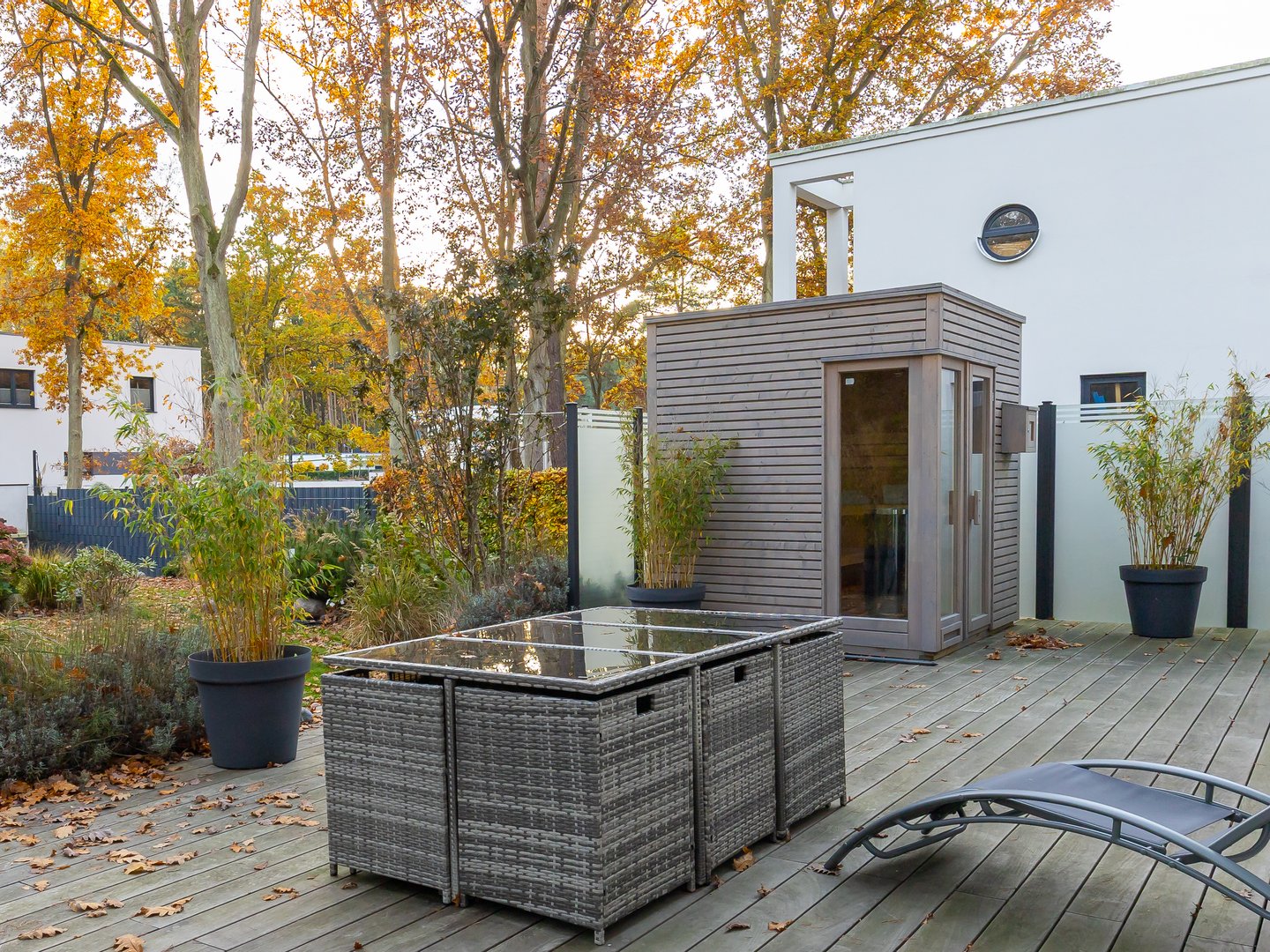Premium Bauhaus Ferienvilla – 160 m² Wohnfläche auf 950 m², Strand fußläufig, mit Sauna & Wallbox!