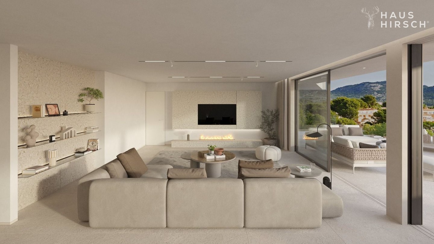 Das Herzstück bildet der offen gestaltete Wohn- und Essbereich mit direktem Zugang zu den großzügigen Terrassen. Vier Schlafzimmer mit jeweils eigenen Bädern bieten höchsten Wohnkomfort und Privatsphäre.