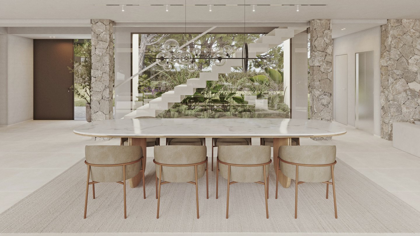 Die Finca besticht durch ihre Kombination aus minimalistischer Eleganz und großzügigen, lichtdurchfluteten Räumen. Sie ist der ideale Ort, um Momente der Ruhe und Erholung zu genießen und gleichzeitig unvergessliche Erinnerungen mit Familie und Freunden zu schaffen. Ob bei einem gemeinsamen Filmabend im stilvollen Wohnzimmer, auf der einladenden Terrasse bei einem Glas Wein oder vollkommen entspannt im großzügigen Poolbereich – hier finden Sie den perfekten Rückzugsort.