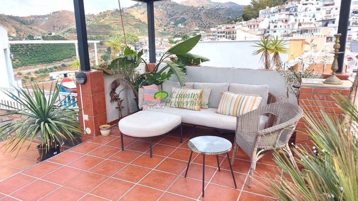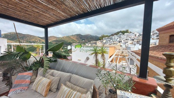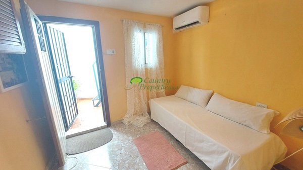 Das Anwesen ist im Erdgeschoss mit Wohn-Esszimmer mit Klimaanlage warm / kalt, offene Küche, ein schönes neues Bad mit Schiebetür, modern und elegant mit großer Dusche und ein Schlafzimmer mit Doppelbett auch mit Klimaanlage ausgestattet verteilt.  Der erste Stock besteht aus einem geräumigen Wohn-/Schlafzimmer mit Holzofen, Klimaanlage warm/kalt, einem Badezimmer und einem zweiten Schlafzimmer mit Klimaanlage. Von diesem Schlafzimmer aus hat man direkten Zugang zur großen Dachterrasse mit Pergola, einem neuen Jacuzzi, einer gemütlichen Sitzecke und einer kleinen Küche mit Kühlschrank in der Casita/Abstellkammer. Von der Dachterrasse hat man einen schönen Blick auf das Dorf, die Kirche und teilweise auf das Meer.