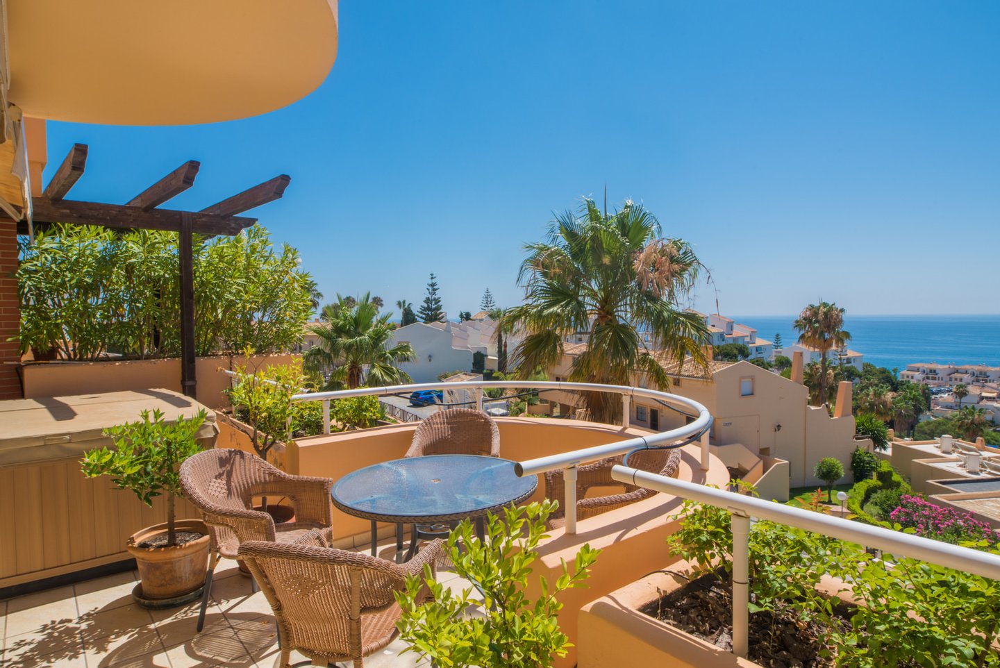 Annehmlichkeiten nahebei, Küche ausgestattet, Jacuzzi, Wohnzimmer, Grill, 24Std Sicherheitsdienst, Private Terrasse, Küche ausgestattet, Wohnzimmer, Meerblick, Überdachte Terrasse, Einbauschränke, Geschlossene Wohnanlage, Panoramablick ,
