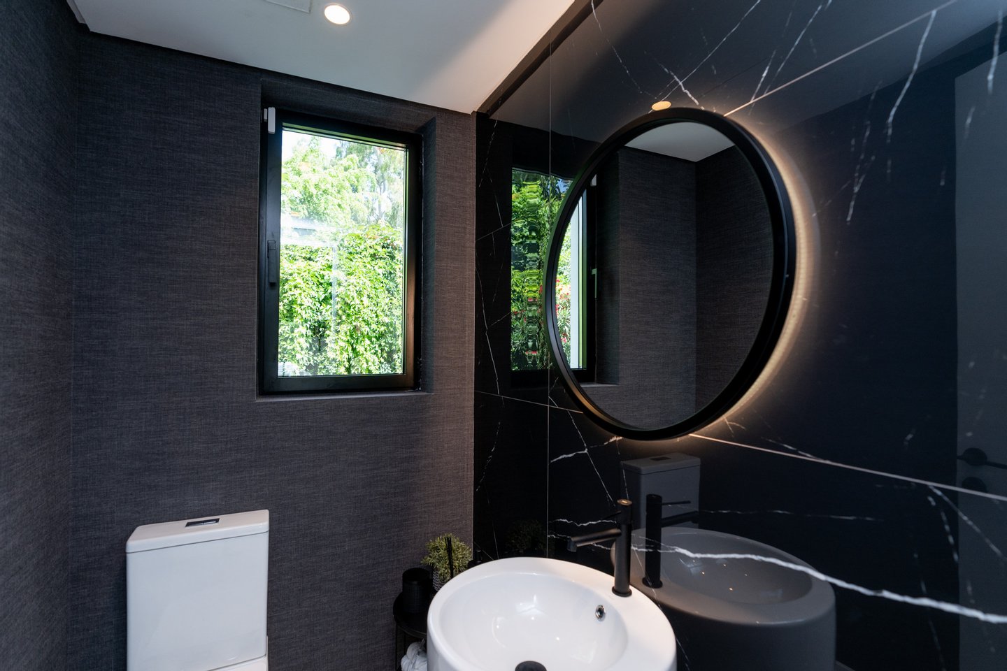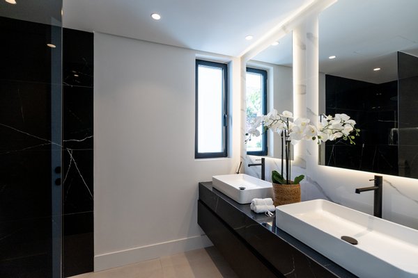 Große Fenster zieren die Innenräume, die den Panoramablick einrahmen und reichlich natürliches Licht in die Wohnräume lassen.